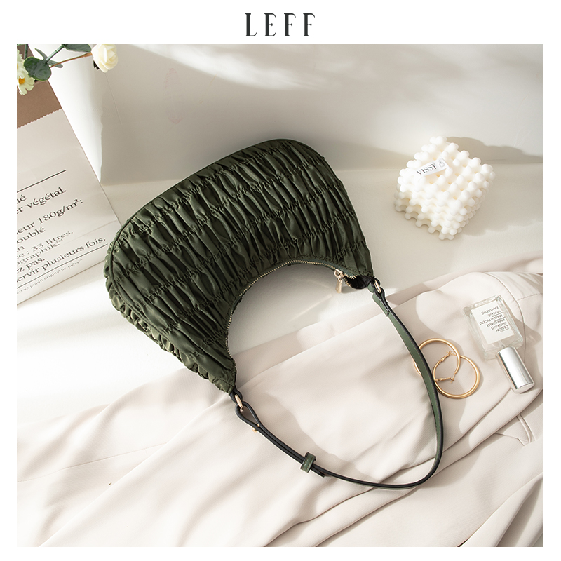 Leve thousands of layers bag Girl new handbag Fashion Summer Woven Crescent Moon Bag Folds Nylon Canvas Armband