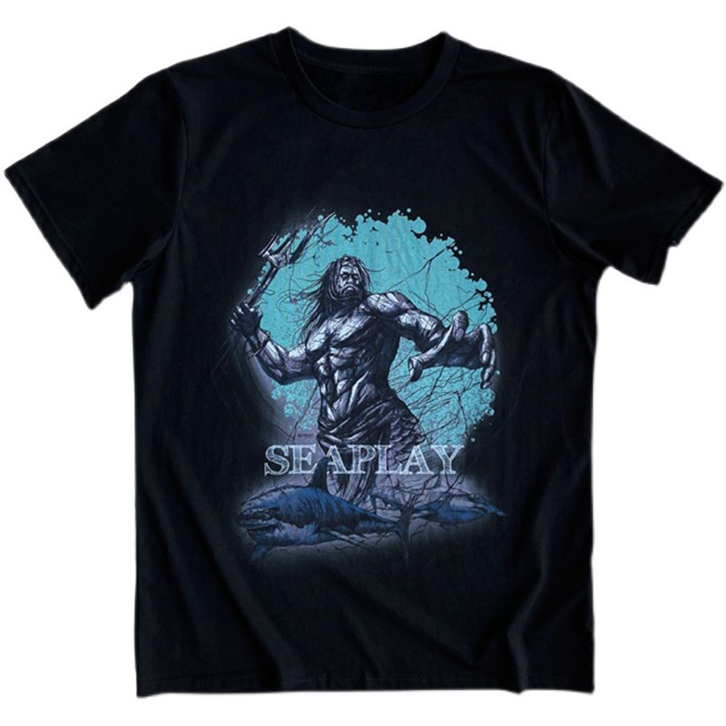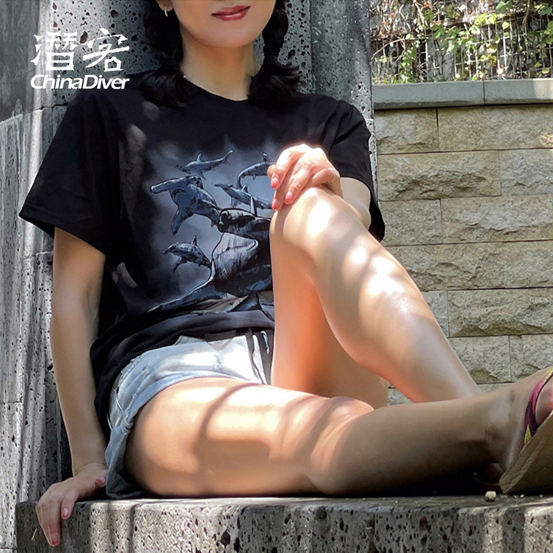 Seaplay ocean diving theme T-shirt black and white creative hand-painted couple cotton round neck printing short sleeves can be customized