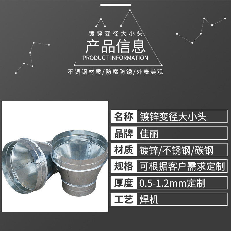 Galvanized air duct variable diameter direct galvanized white iron converter variable diameter head adapter 300 to 200mm