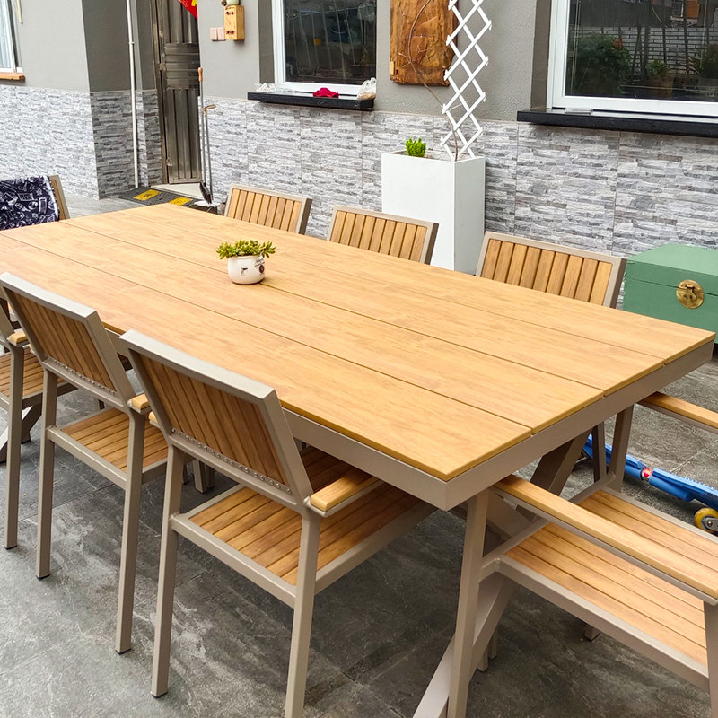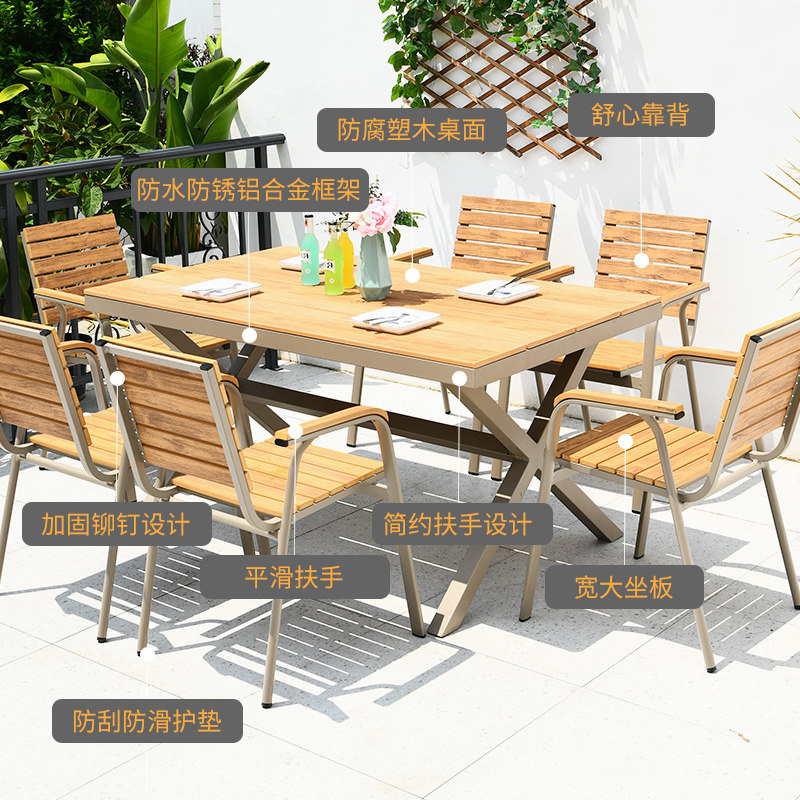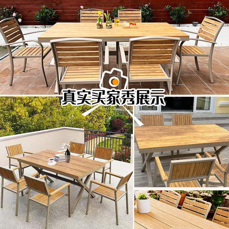 Outdoor Plastic Wood Table And Chairs Open-air Balcony Casual Outdoor Patio Garden Garden Waterproof Sunscreen Cafe embalming wood table and chairs
