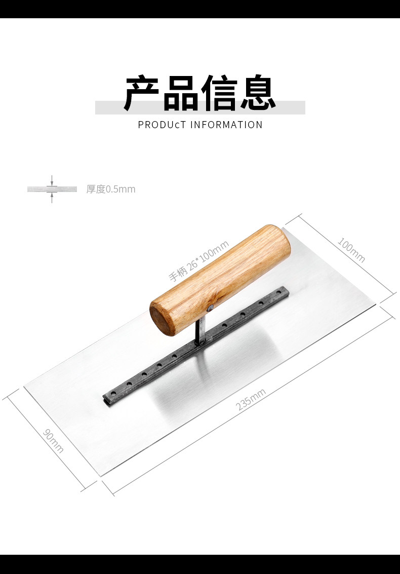 Furnishing Tool Scraper Thickened Clay Clip Wood Handle Oil Grey Knife Plastering Stainless Steel Cement Work Tile Scraping Putty Tool