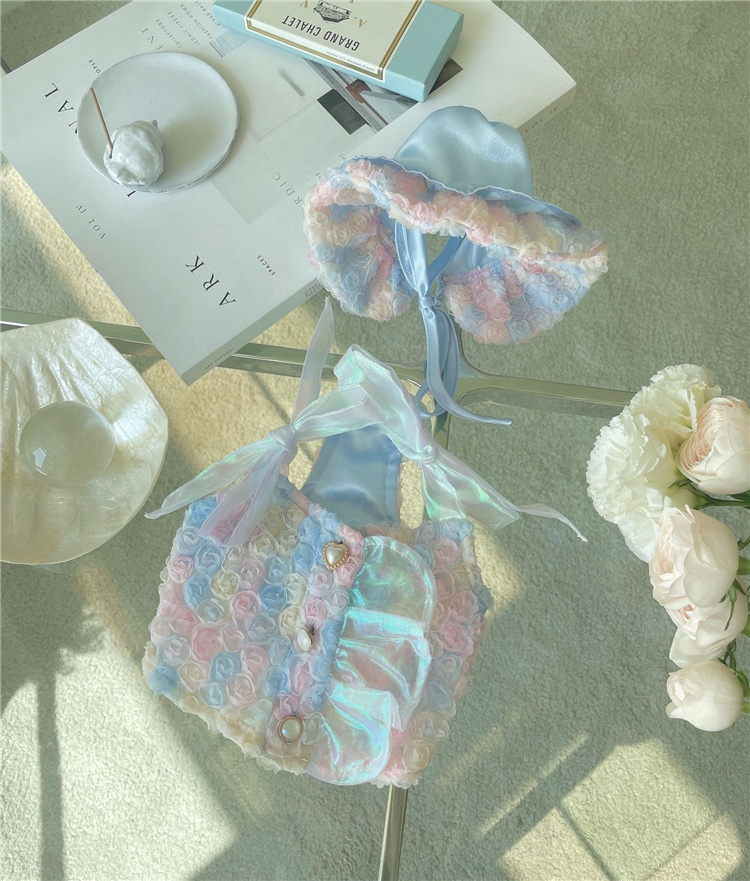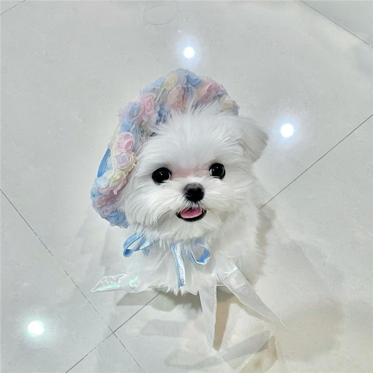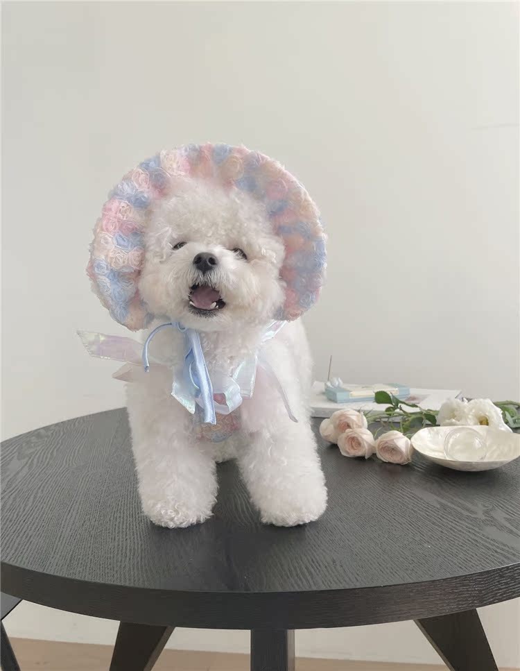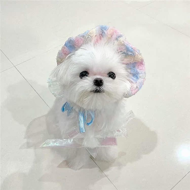 INS Wind South Korea Summer Autumn Mermaid Ji Embroidered Hat Dog Cat Maltese Strap Pet Style Hat