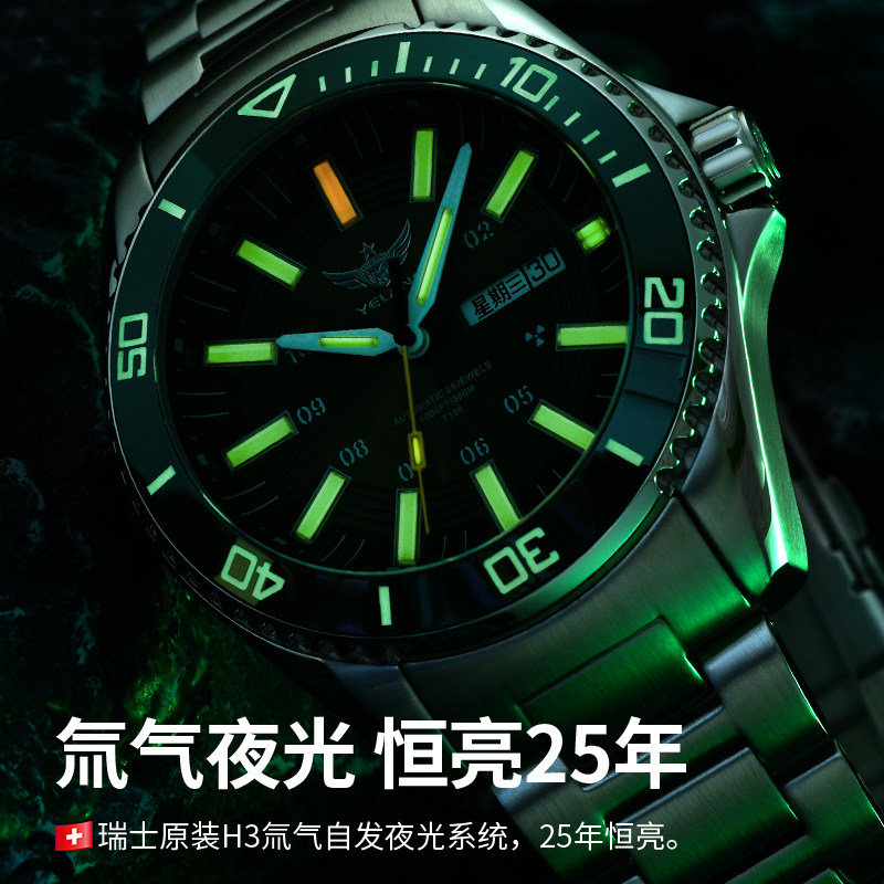 Wild wolf watch water ghost mechanical watch automatic Swiss tritium gas luminous waterproof famous brand men's watch top ten brands