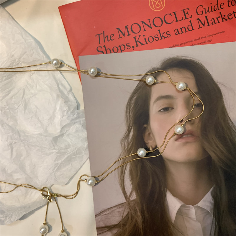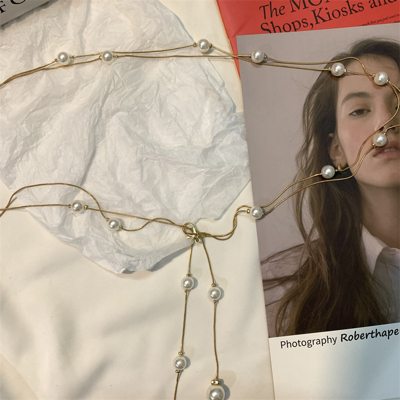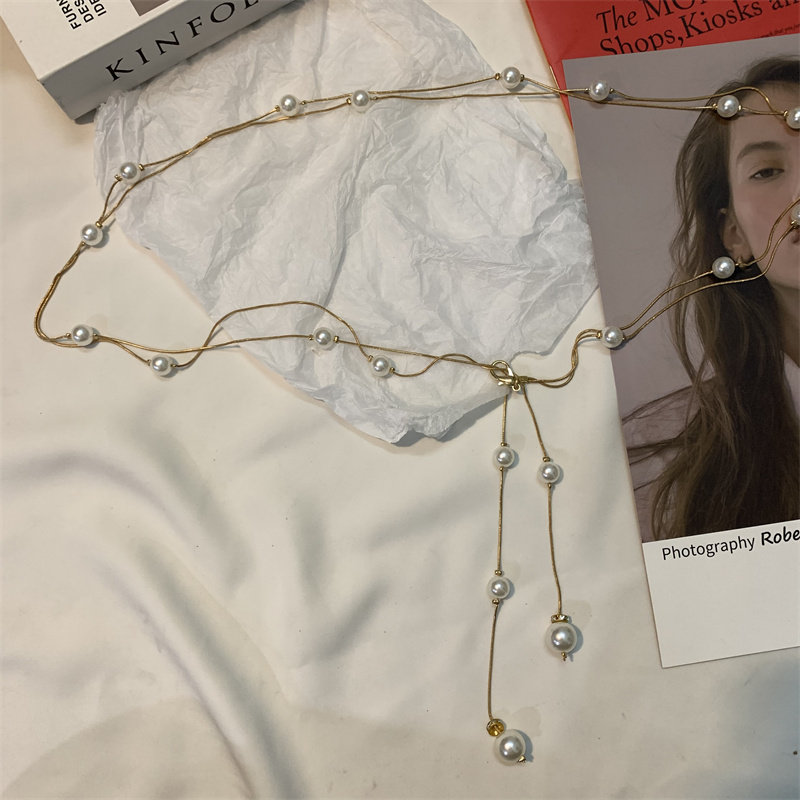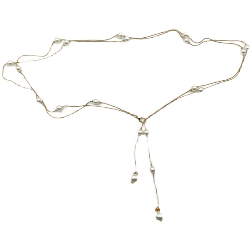 ins new double layer pearl waist chain ladies fashion simple belt decoration thin belt with skirt suit waist