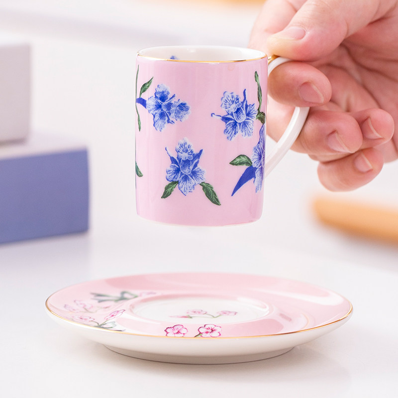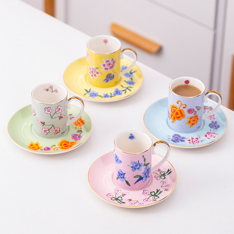 Luzerne Lusheng ceramic European-style flower drawing gold personality trend palace style new bone china espresso cup saucer