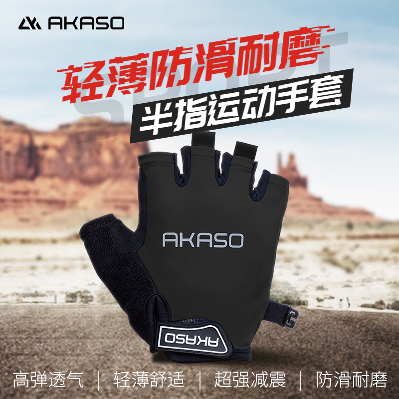 AKASO bicycle riding gloves half-finger anti-skid shock-absorbing mountain bike road bike short-finger sports fitness