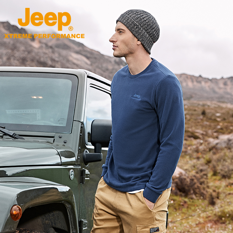 Jeep Casual Fleece Pullover Men's Large Size Outdoor Hiking Hidden Inside Warm Top