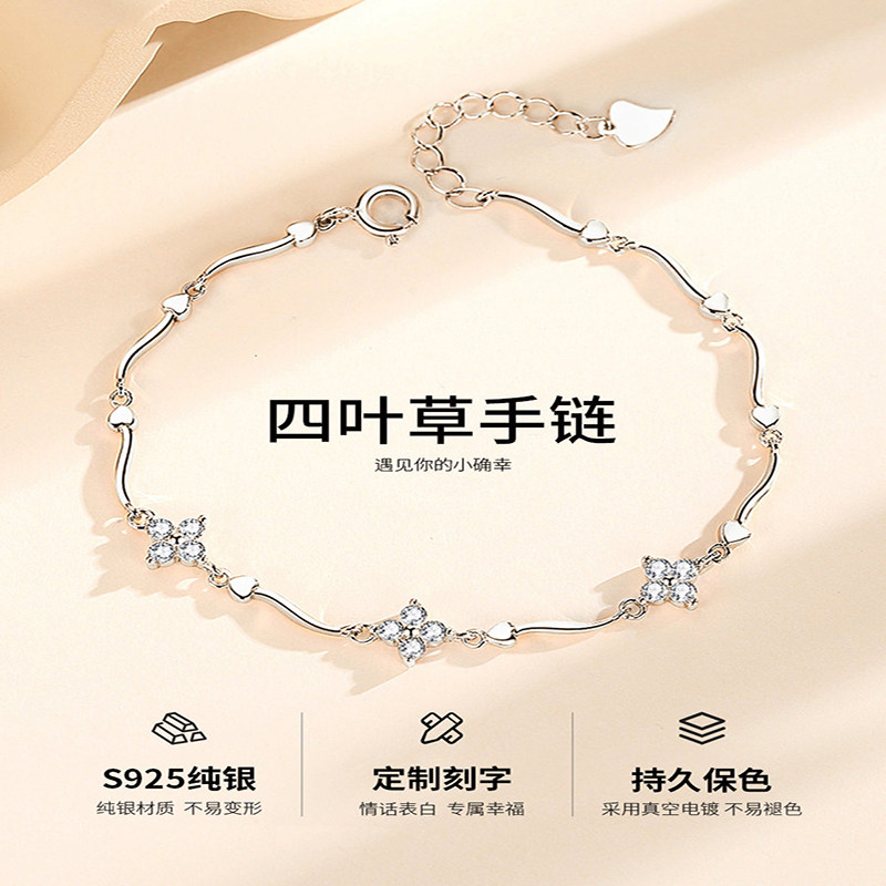 Four Leaf Female Handmade Sterling Silver Inlaid Gemstone New 2022 Light Luxury Romantic Birthday Gift for Girlfriend Christmas
