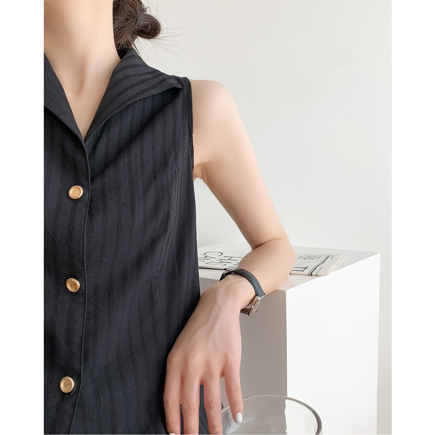 Vertical Stripe Style Sleeveless Collar Shirt Woman Summer Full Cotton Jacquard Design Sensation Small Crowdcut Shoulder Suit Collar Blouse