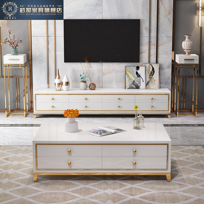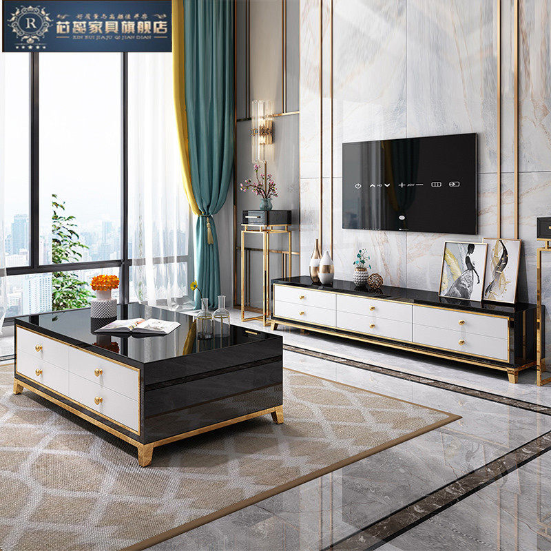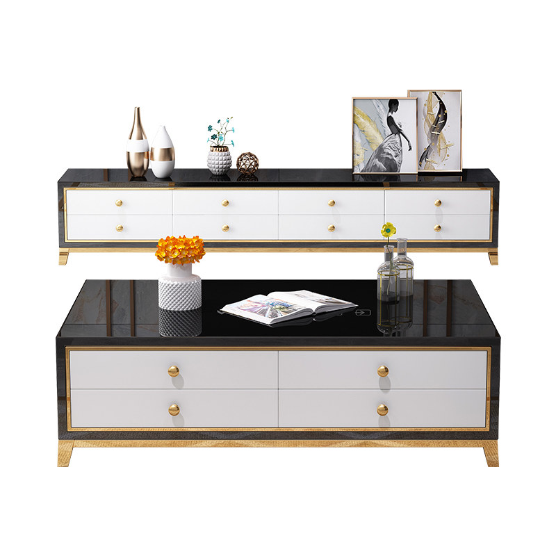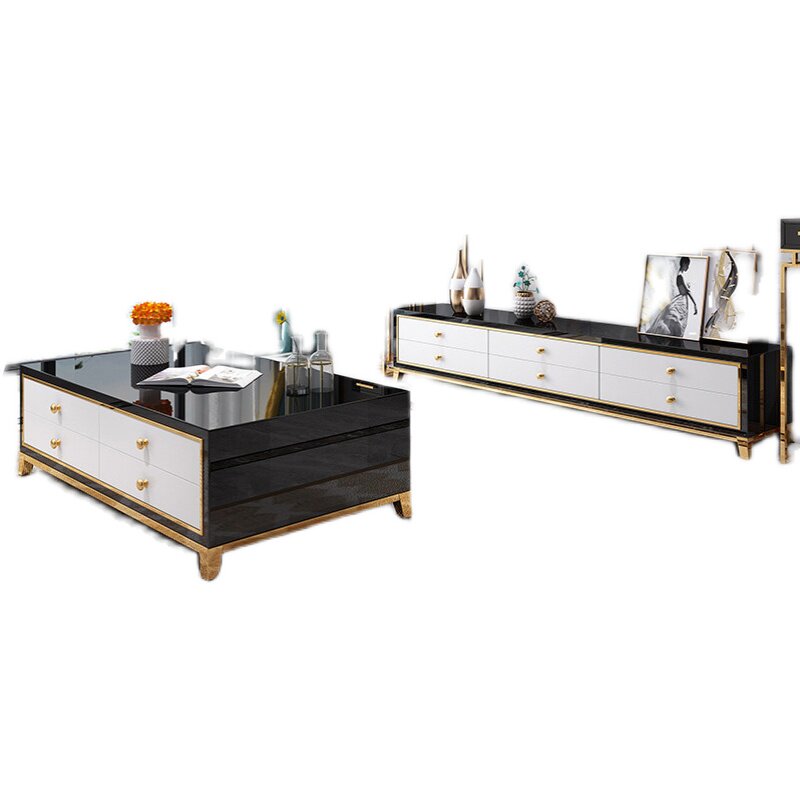 Light luxury 8 drawers tea table TV cabinet combination set modern style simple stainless steel paint black and white furniture