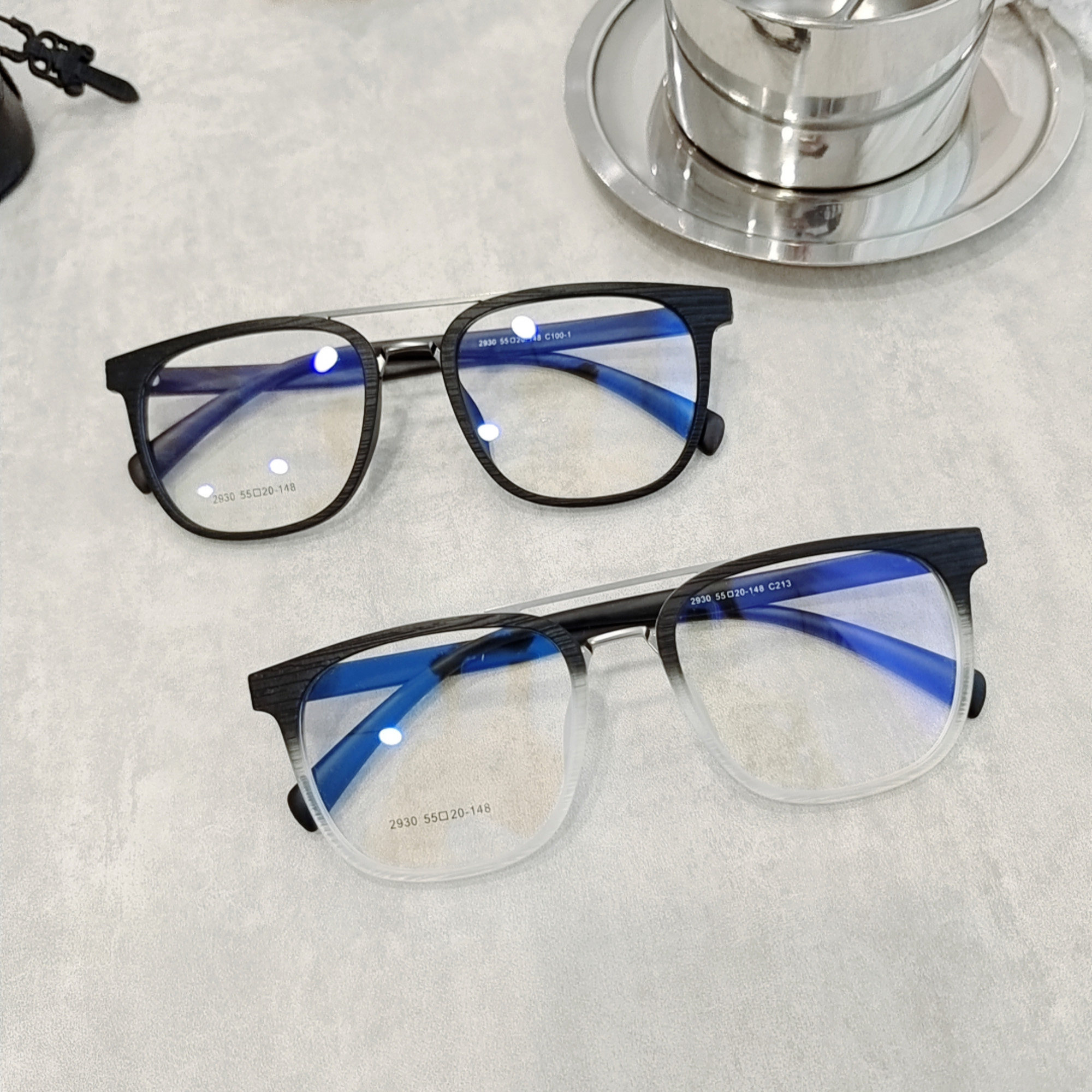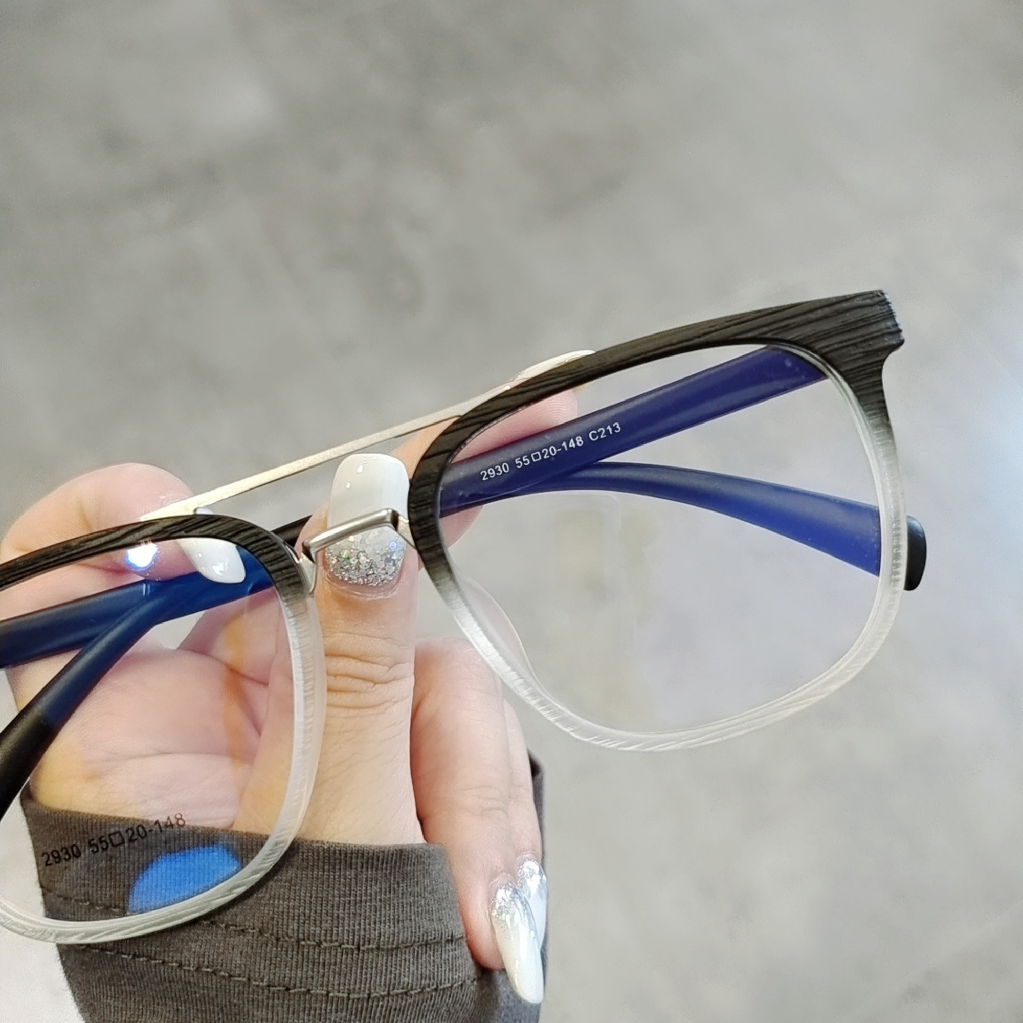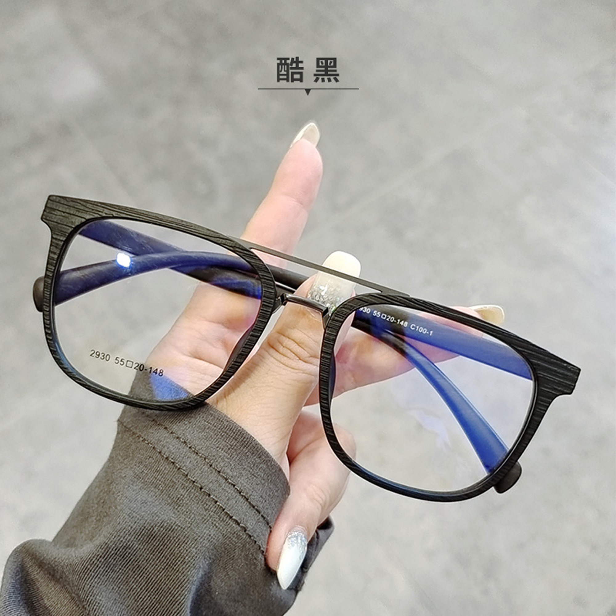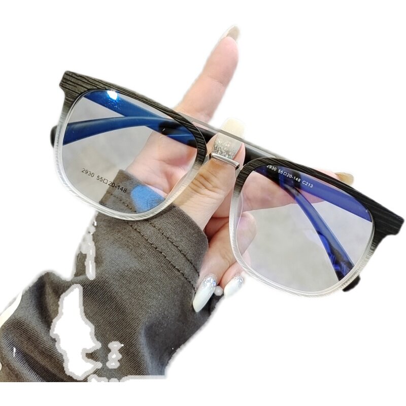 Star with the same paragraph anti-blue light flat light goggles men's literary retro wood grain color matching double beam large frame myopia frame women