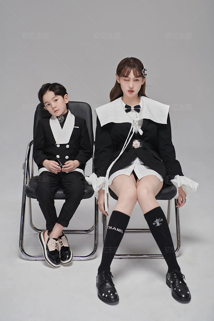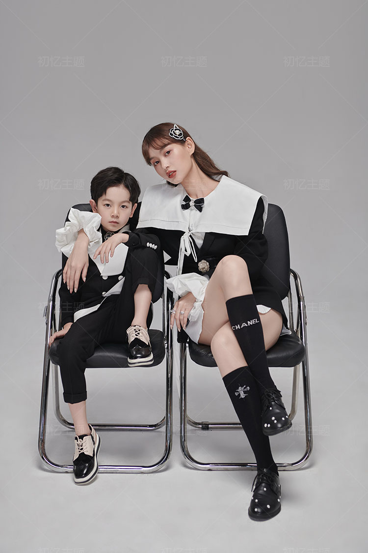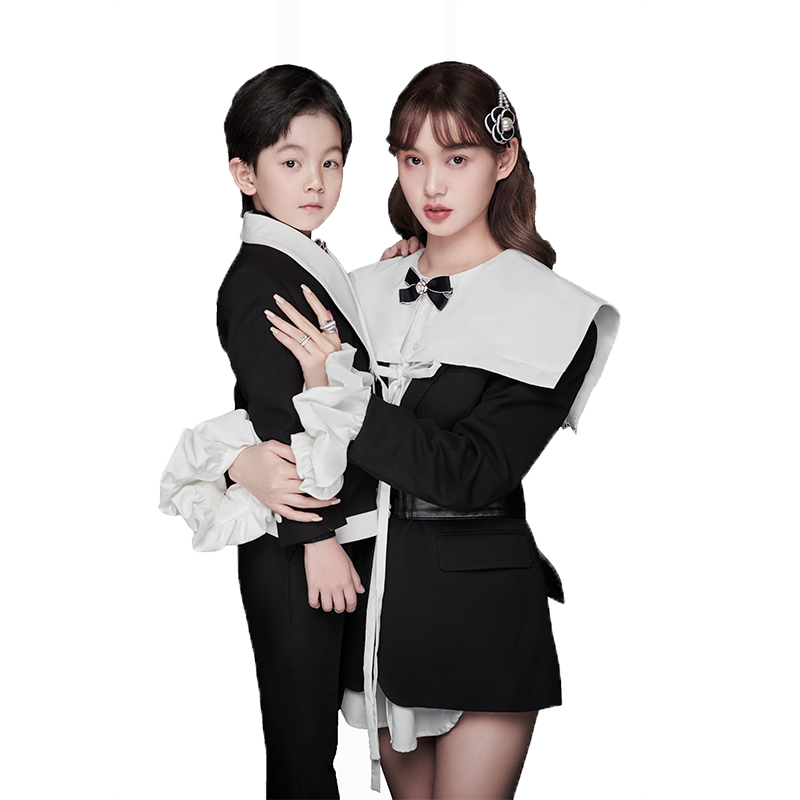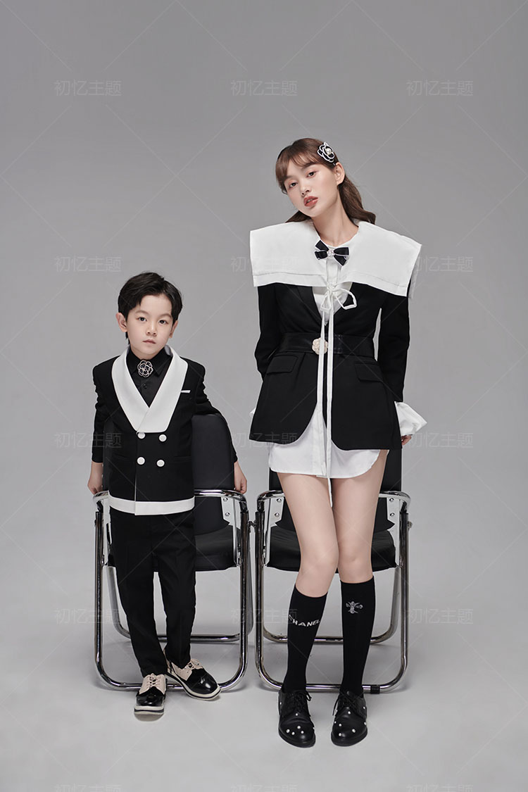 2022 new photo gallery Parent-child Themed Photo Clothing Mother-son Inner View Fashion Morden Black Suit Retro
