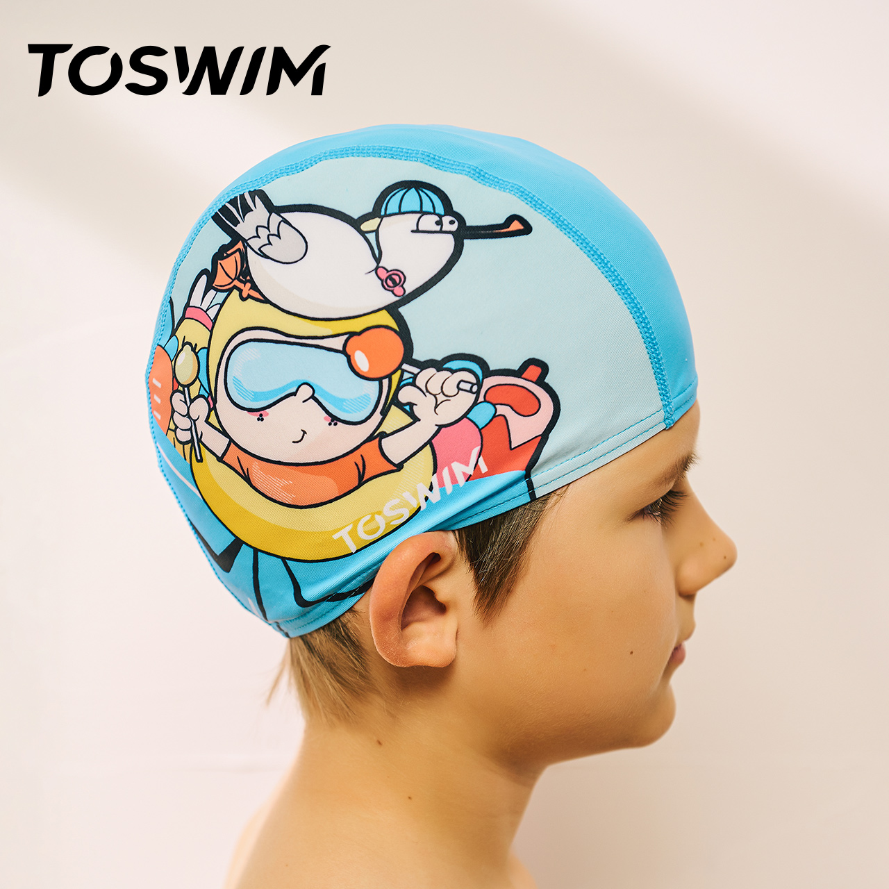 TOSWIM cloth hat girl boy cute sunscreen baby cloth don't take swimming cap fashion children's swimming cap summer