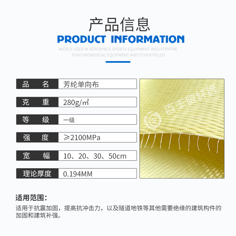 Baifeng Aramid One - way Fabric 1 280g Kefra Tunnel Bridge Reinforced Fabric Insulation Plant Reinforced Plant