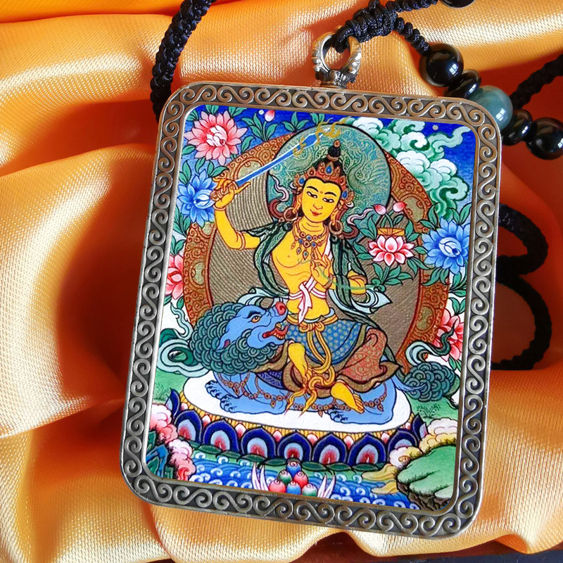 Custom Thangka pendant Natal Buddha portable Buddha card Tibet hand-painted small Thangka Yellow God of wealth four arms Guanyin hot tribute