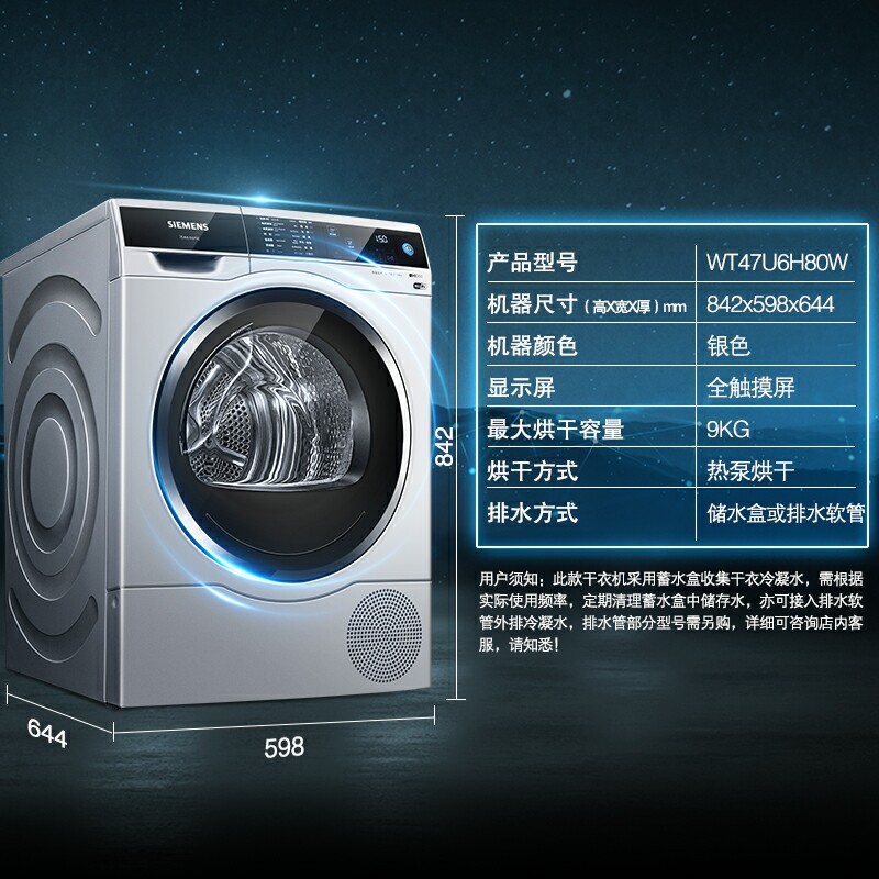 Siemens imported heat pump dryer dryer from the 9 kg household WT47U6H80W