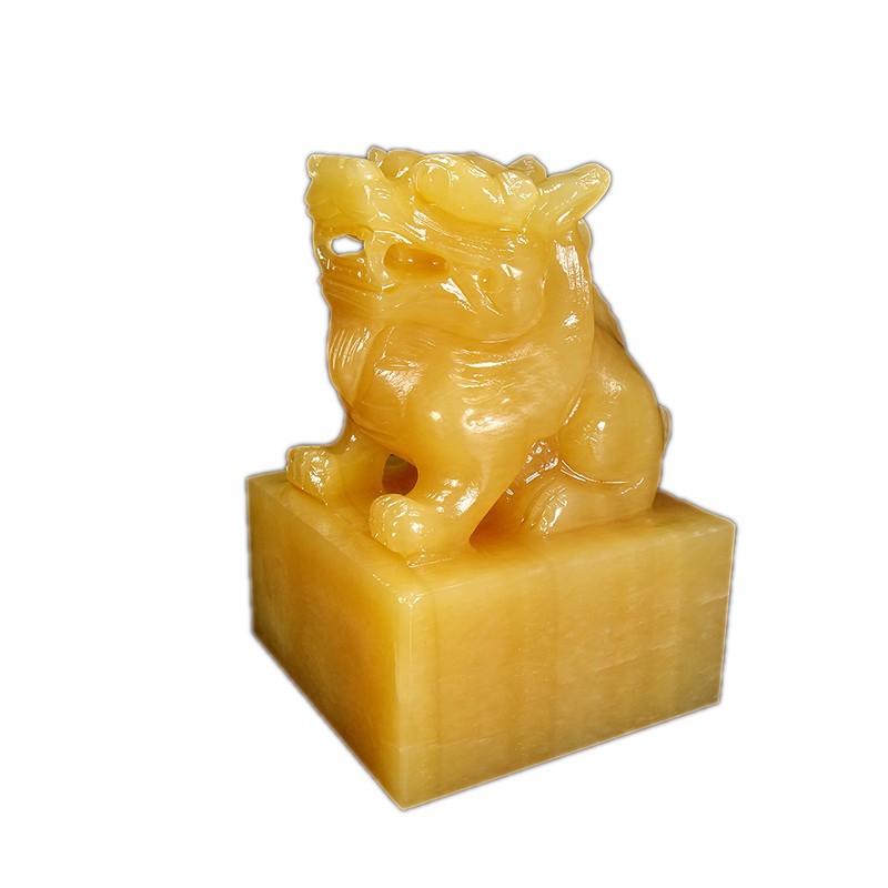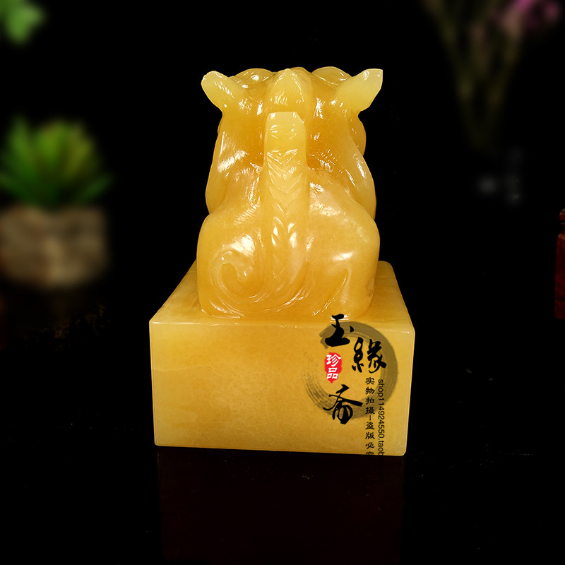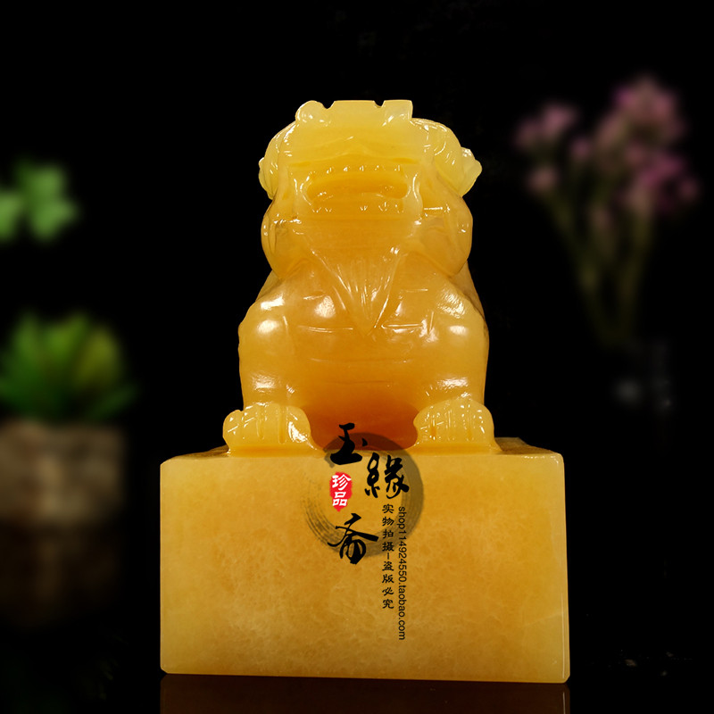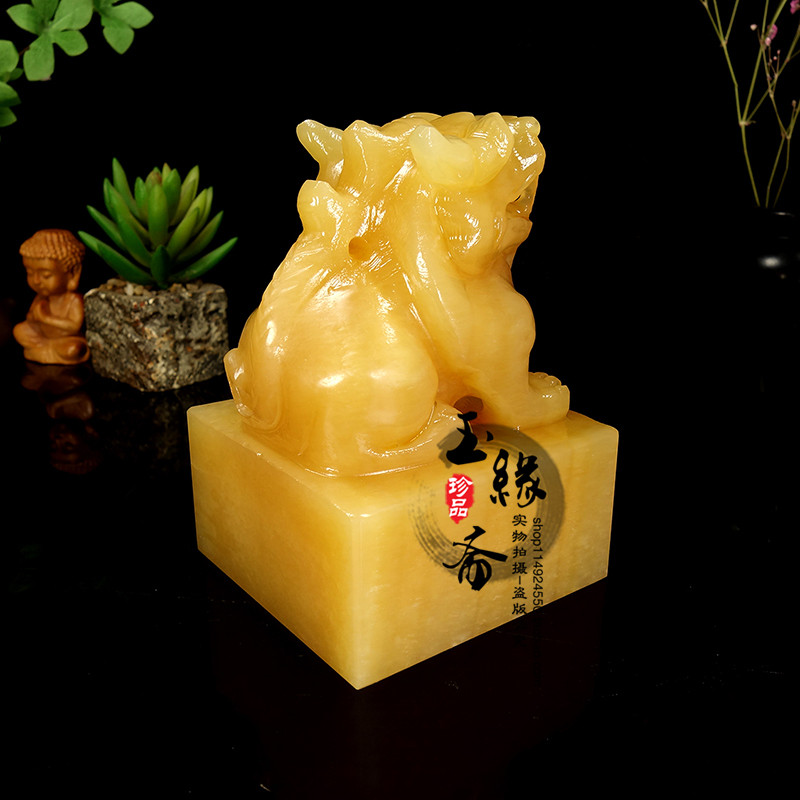 Yellow Jade Leopard Seal Pendulum's Office Qianlong seal engraving Seal Seal Seal Engraving of Cairou Natural jade Opening Gift