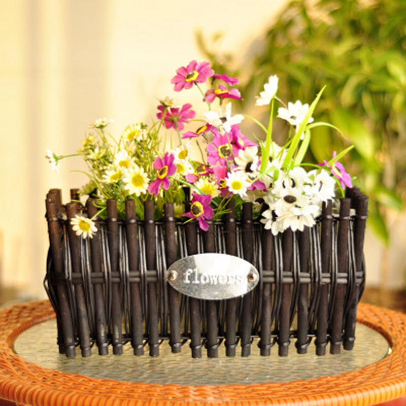 Retro Wood Head Handmade Green Dill Indoor Flower Pot Rectan