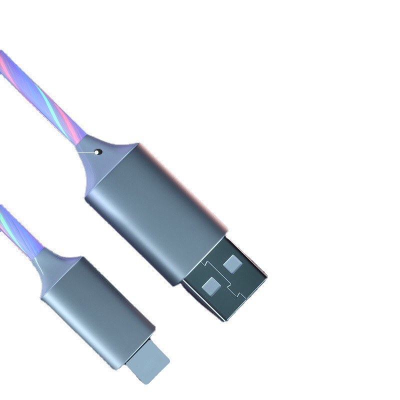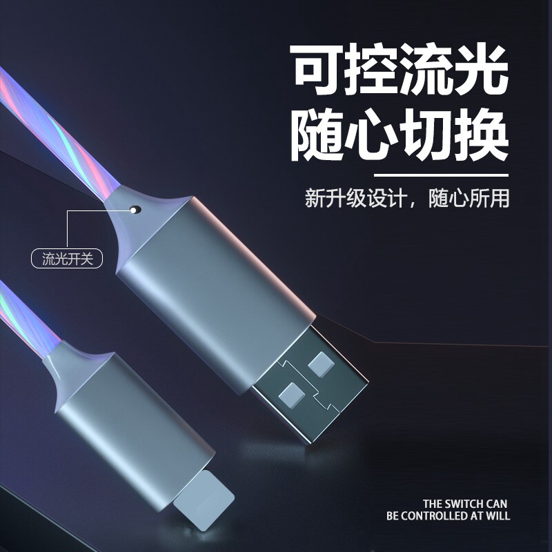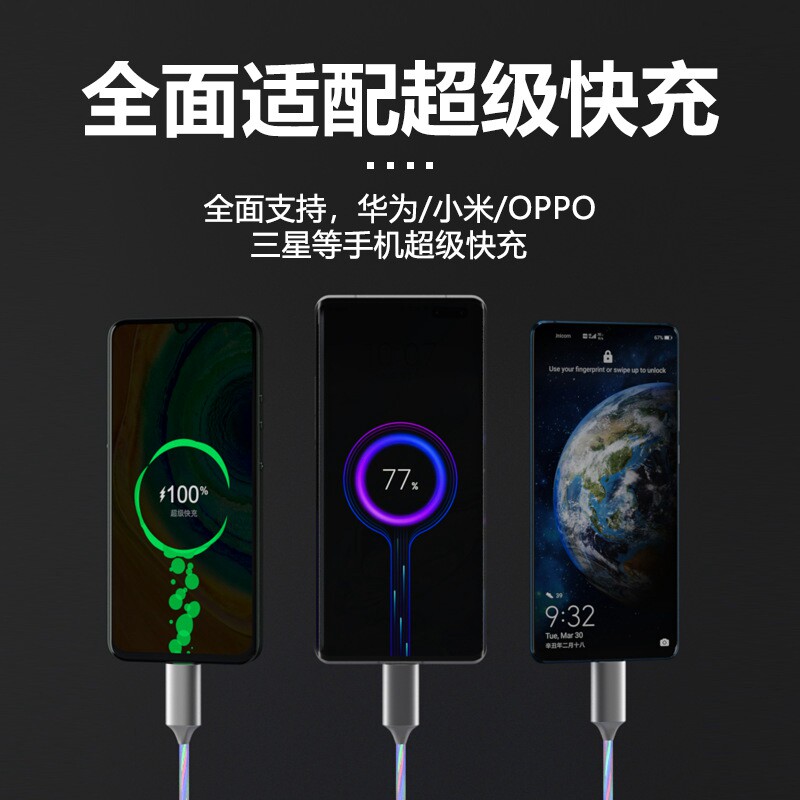 One Drag Two Super Fast Charging Data Line Three-in-one 5A Colorful streaming light charging line applicable Huawei typec Apple Android iphone double head one drag three-2 m oppo on-board race light atmosphere