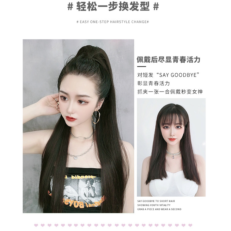 Wig ponytail female grab clip super long temperament natural realistic Net red braid long hair super light high ponytail long straight hair