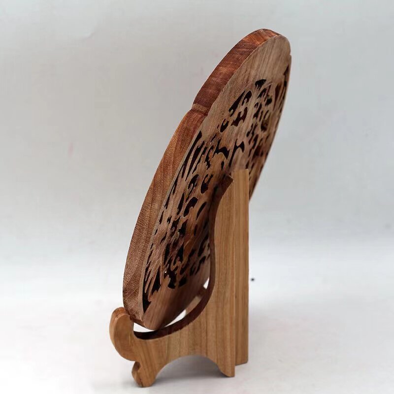 Camphor wood carving ornaments blessing round natural solid wood porch living room wall hanging decoration ingot hollow style