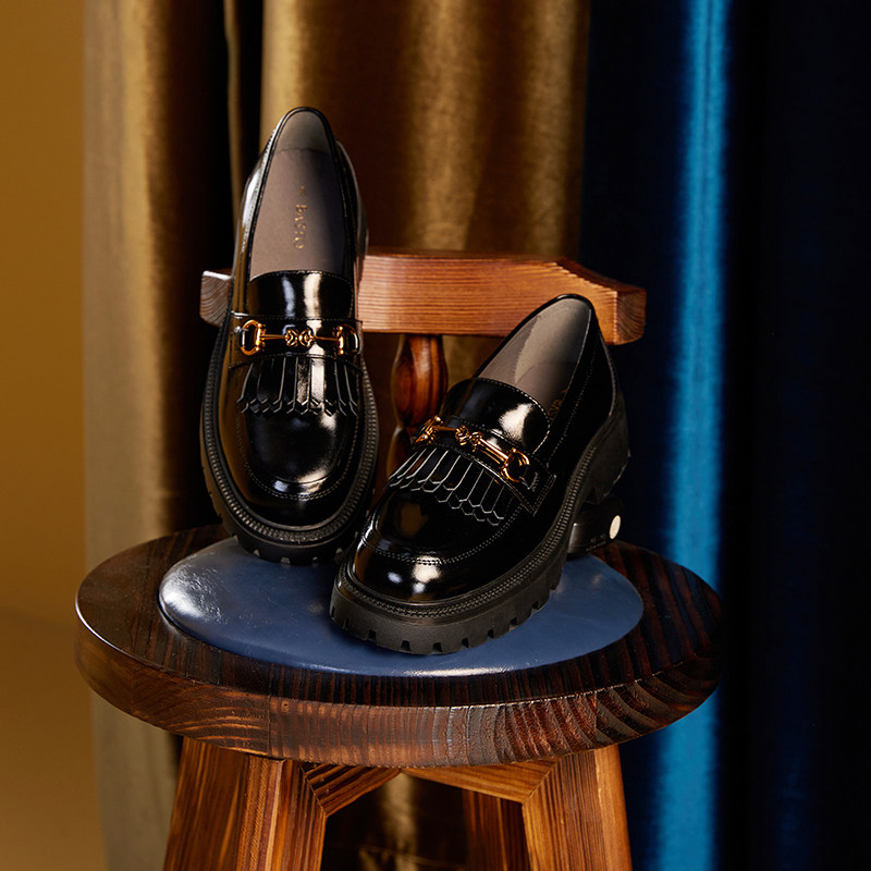 Thyme Autumn Mall New Infinitum Genre Suo Small Leather Shoes Woman Single Shoe Thick Bottom Lefu Shoes WHY10CA1