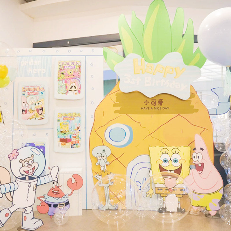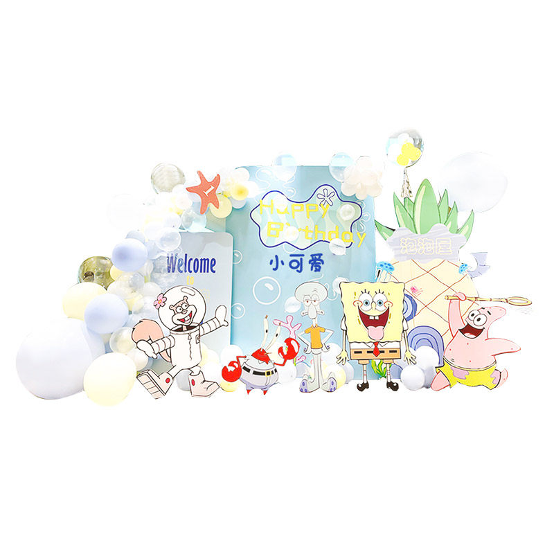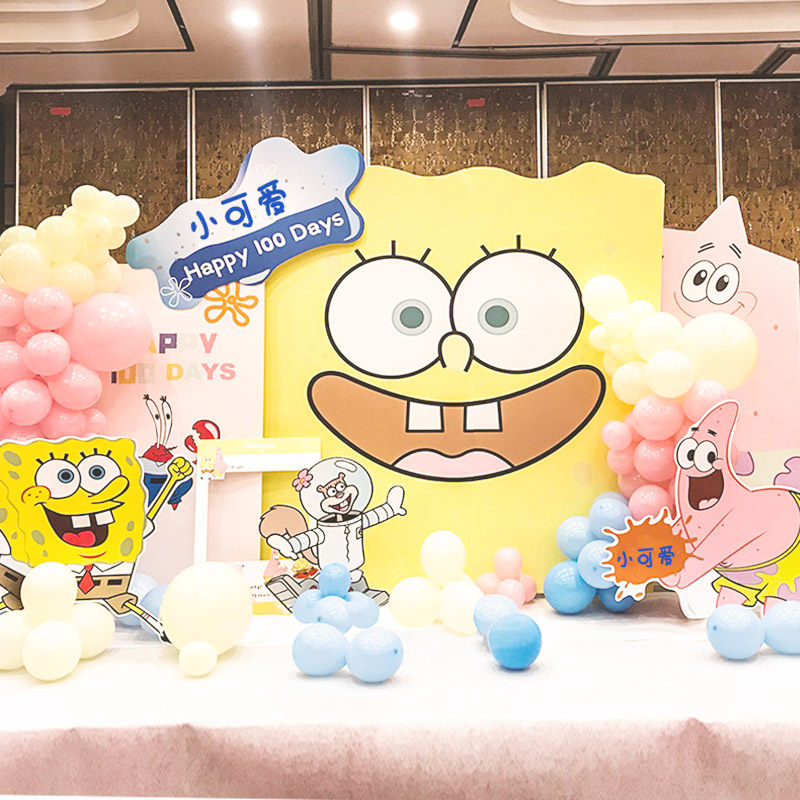 Sponge Baby Birthday Banquet Decoration Scene Arrangement Children Boy One Year Old Party Balloon Background Wall Hundreds Day Banquet-Taobao
