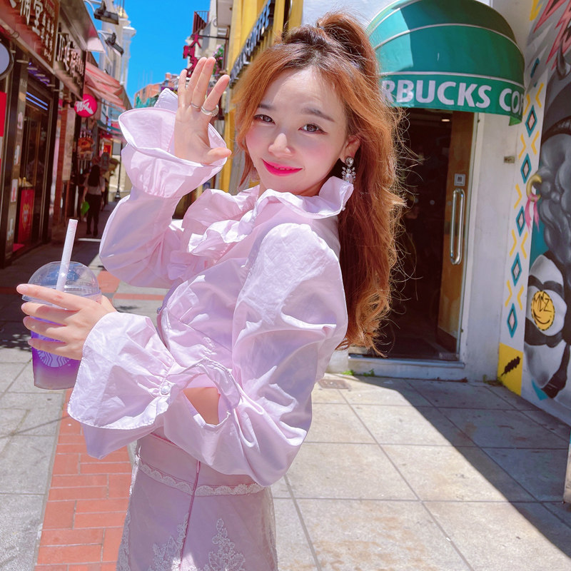 MissLuxury "Japanese girl" French all-match temperament shirt female pink ruffled long-sleeved shirt