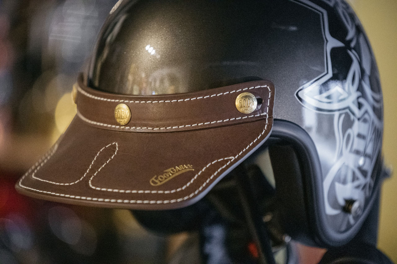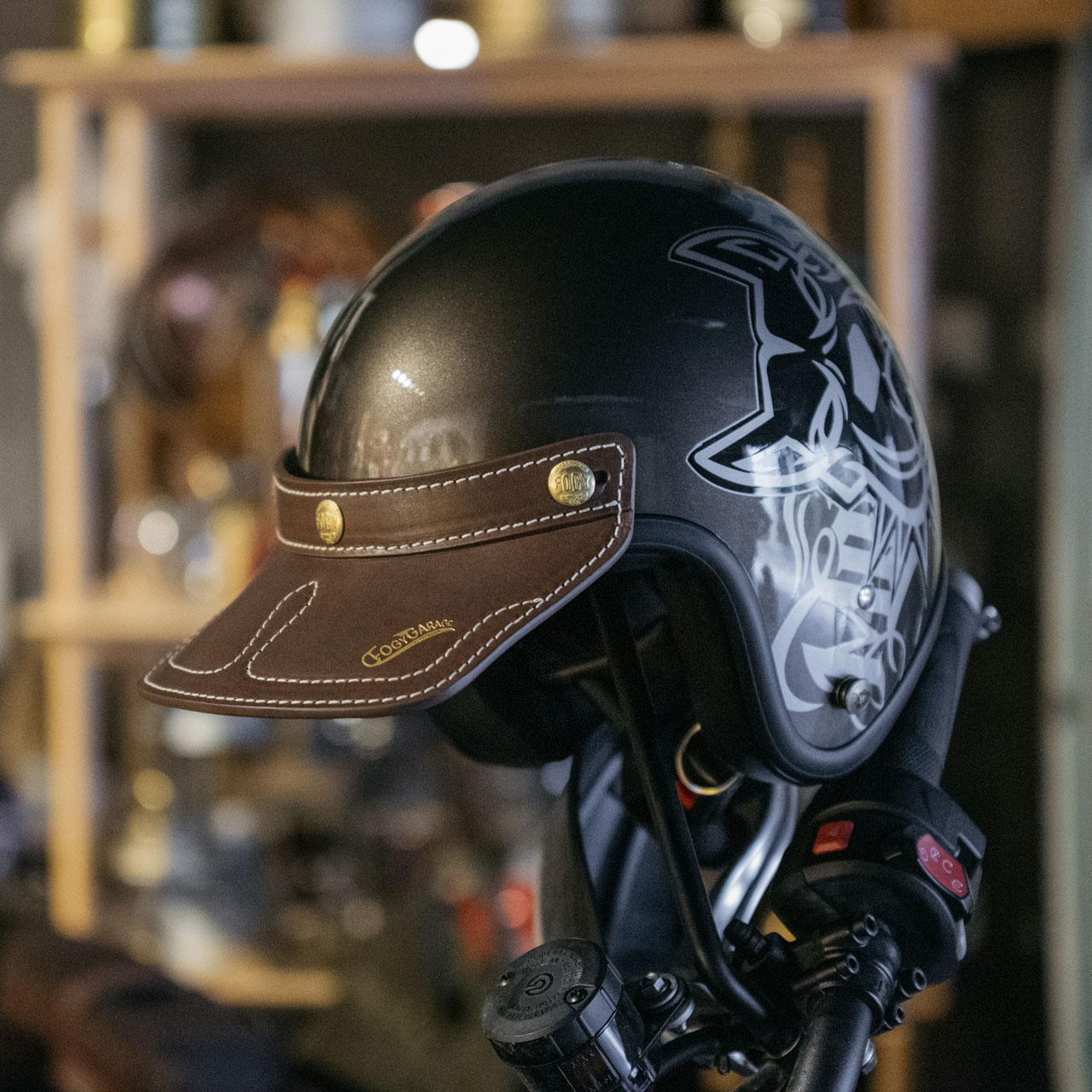 "Flu Garage" handmade three-button universal motorcycle retro helmet leather sun visor brim BELL applicable