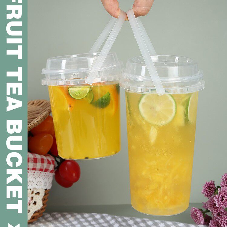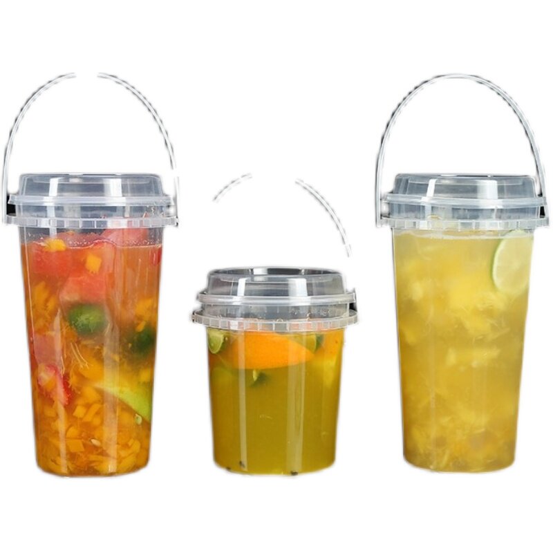 Net Red Large Capacity Hand Fruit Tea Barrel Milk Tea Drink Juice Cup Food Grade Transparent Plastic Takeaway Package