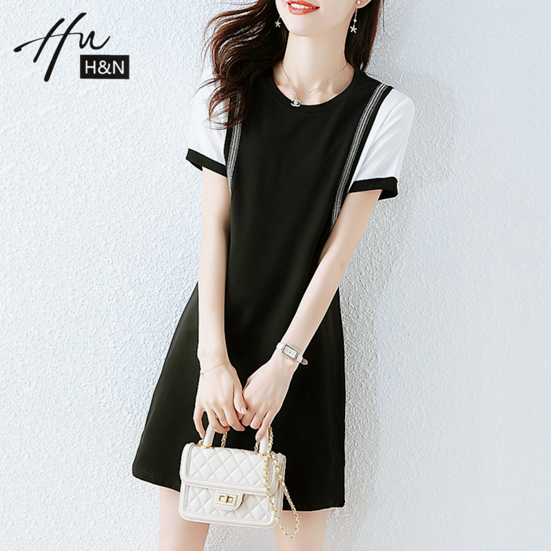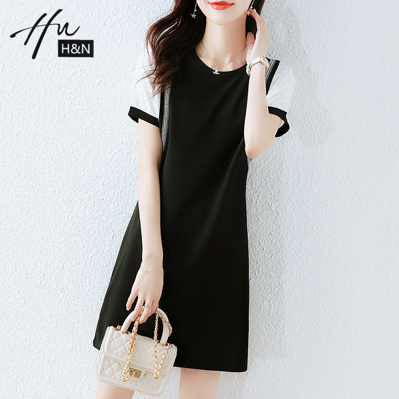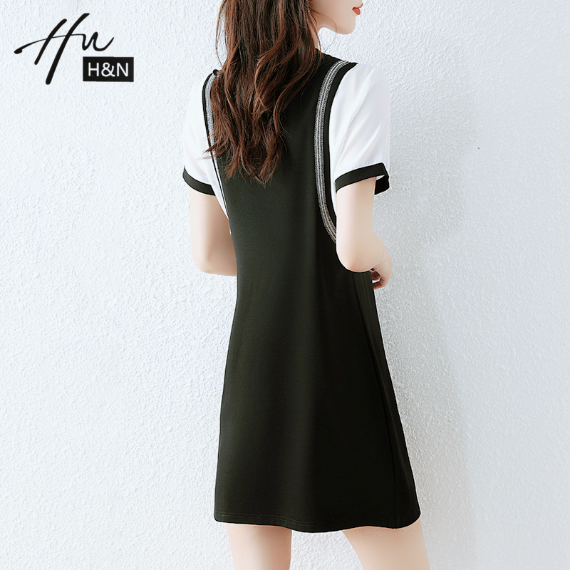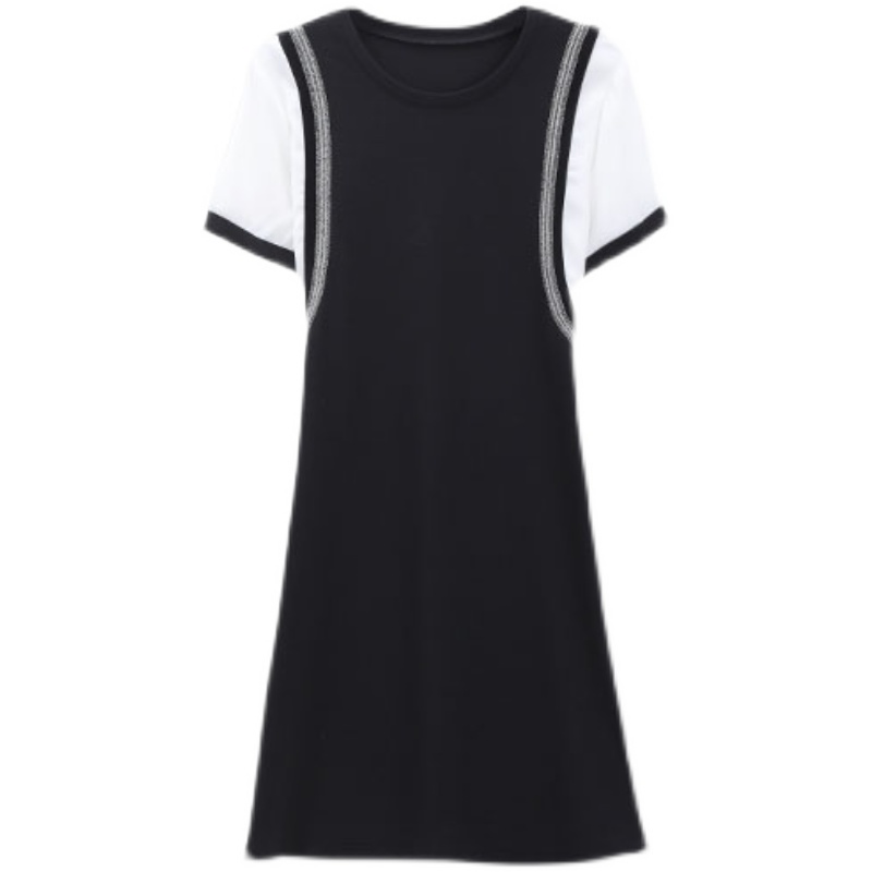 iFashion light and luxurious women's clothing with black and white splicing fake two pieces of foreign clothing and less relaxed and comfortable temperament small skirt