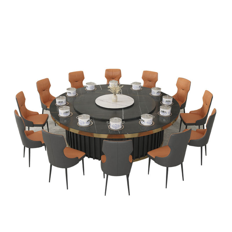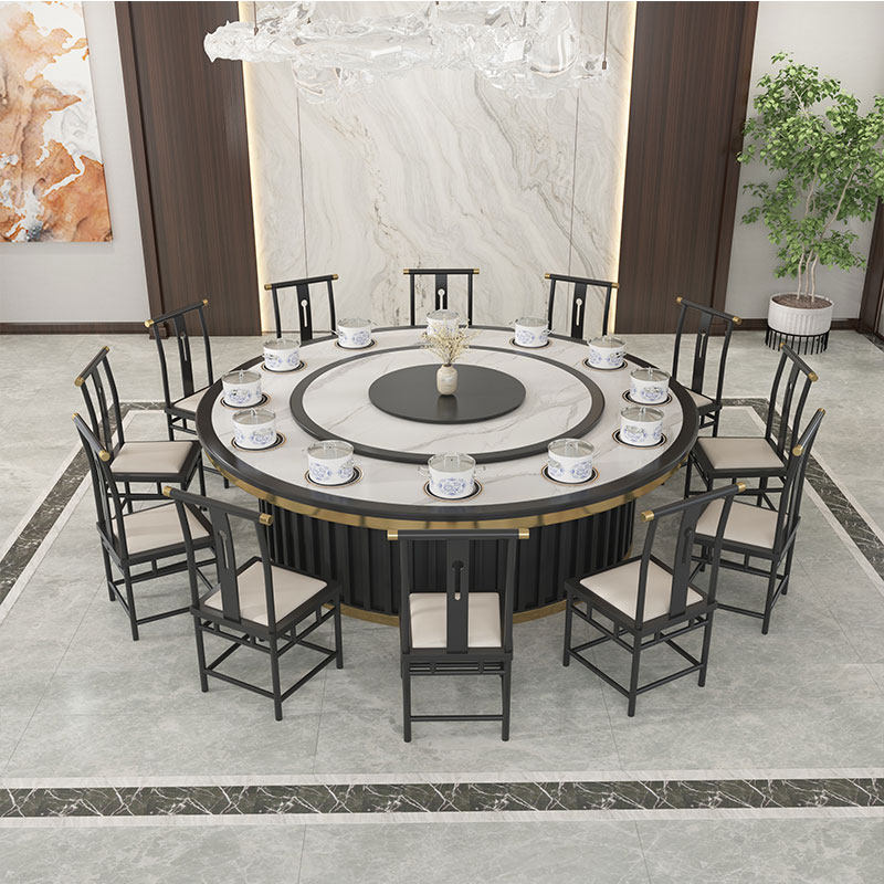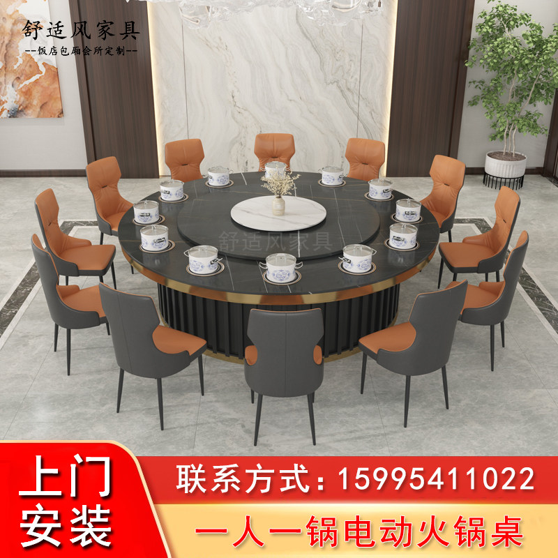 Hot pot table induction cooker integrated hotel electric dining table large round table imitation marble automatic turntable table new Chinese style