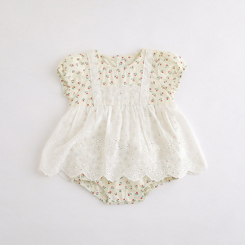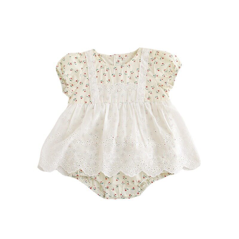 Ins Korean version of summer baby fake two pieces floral romper foreign style triangle bag fart clothing female baby jumpsuit 1