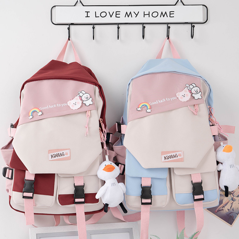 Aigusen Department of ins hit color schoolbag female campus primary and secondary school students original niche shoulders summer large capacity backpack