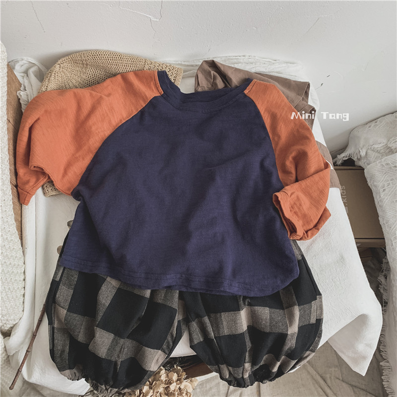 Cost - effective ~ Handling children with sleeves colored long sleeves T - shirts boys and girls to wear bamboo cotton bat sleeve sweater autumn