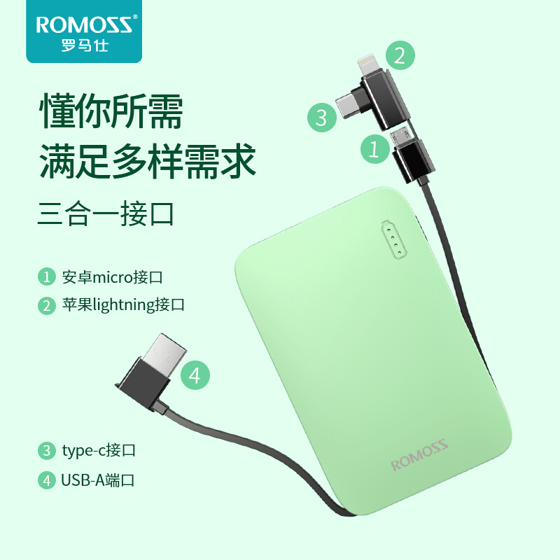 Roman's Bring Your Own Line Mobile Ultra Slim, small portable 10000 mAh time Type-c with plug Three-in-one