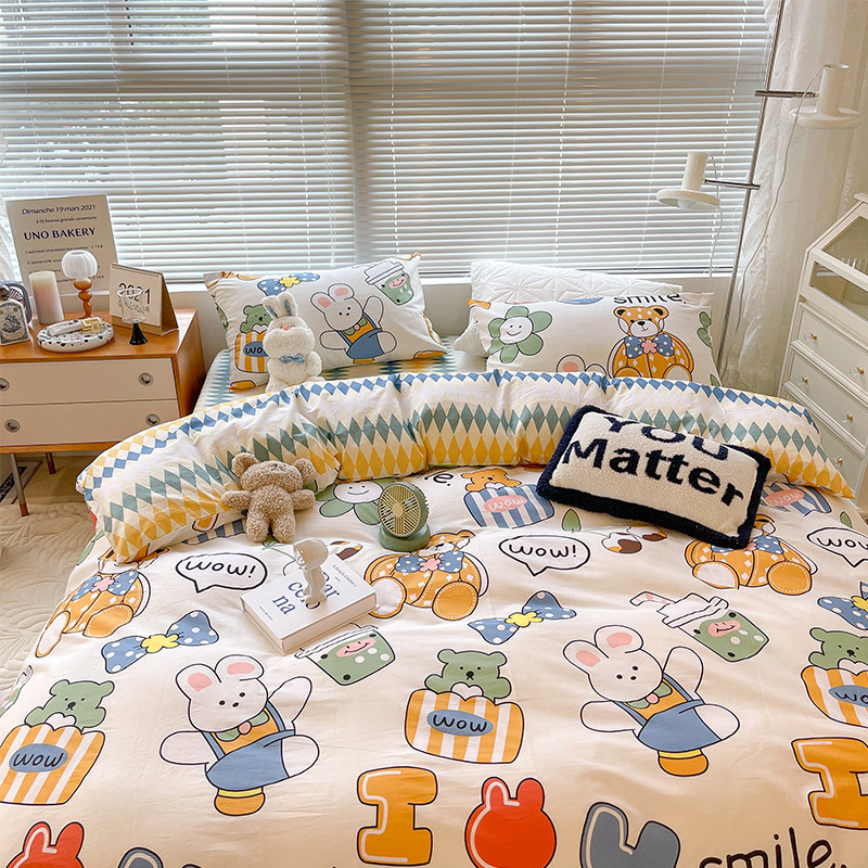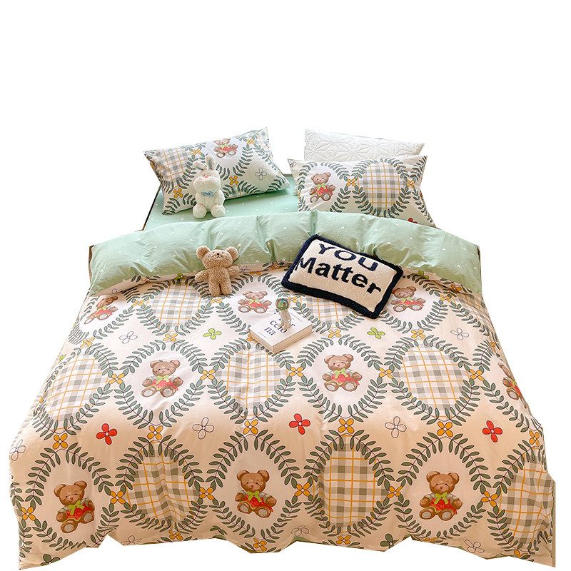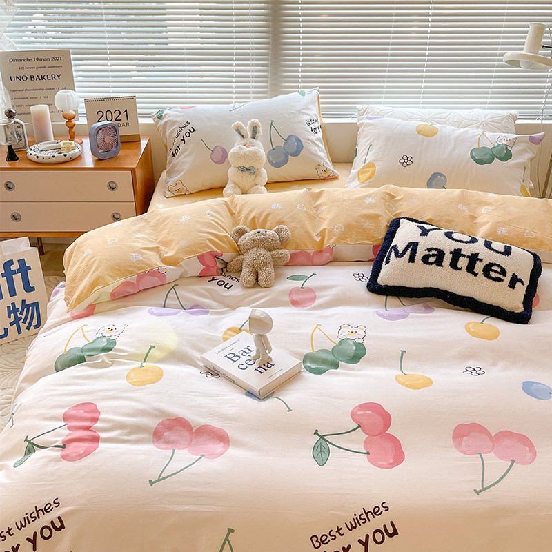 Korean Girl Cream Cherry Pure Cotton Four Pieces Cute Little Fresh All Cotton Ins Bed Linen 3 pieces Bed Goods
