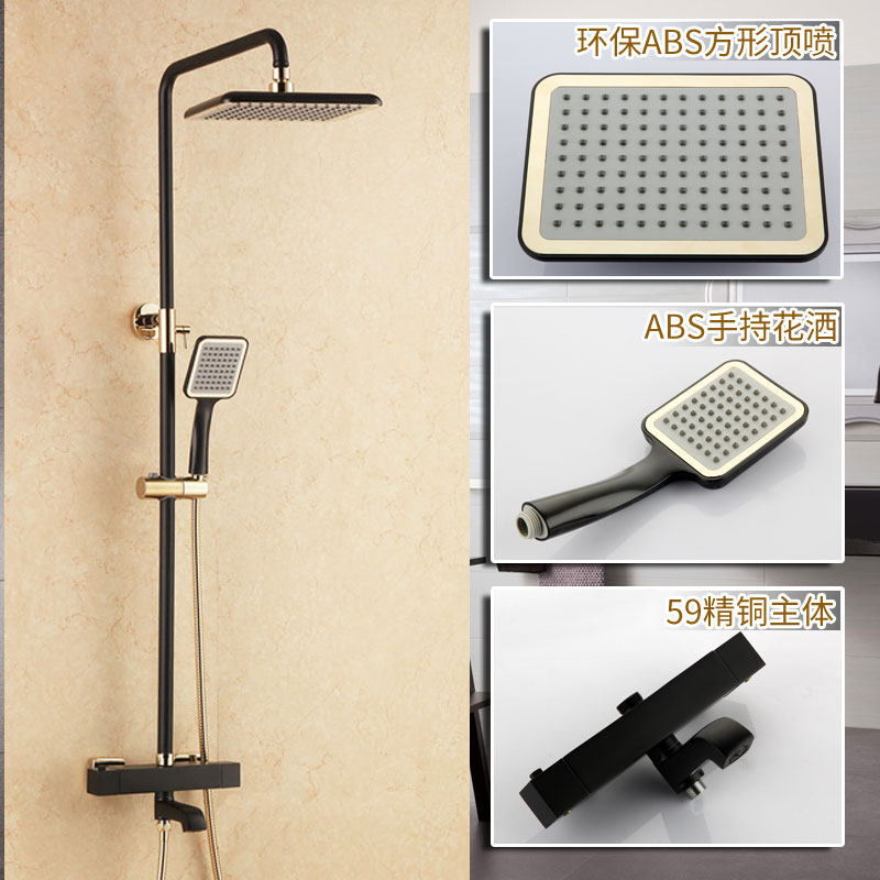 Bathroom supercharged surface-mounted shower shower black hot and cold water faucet bathroom shower nozzle set all copper household