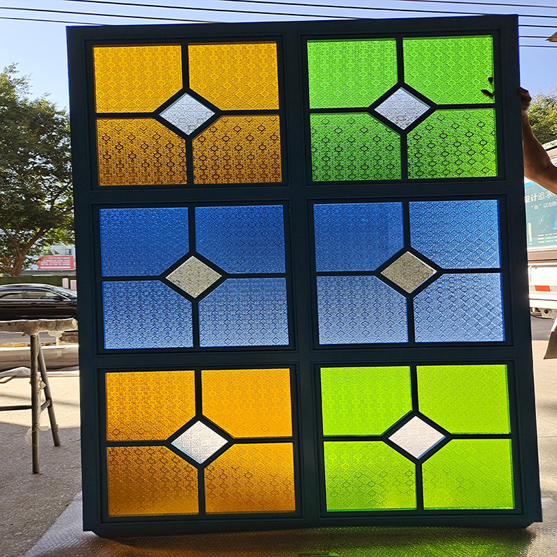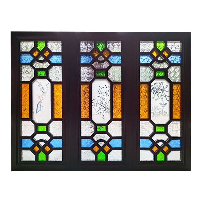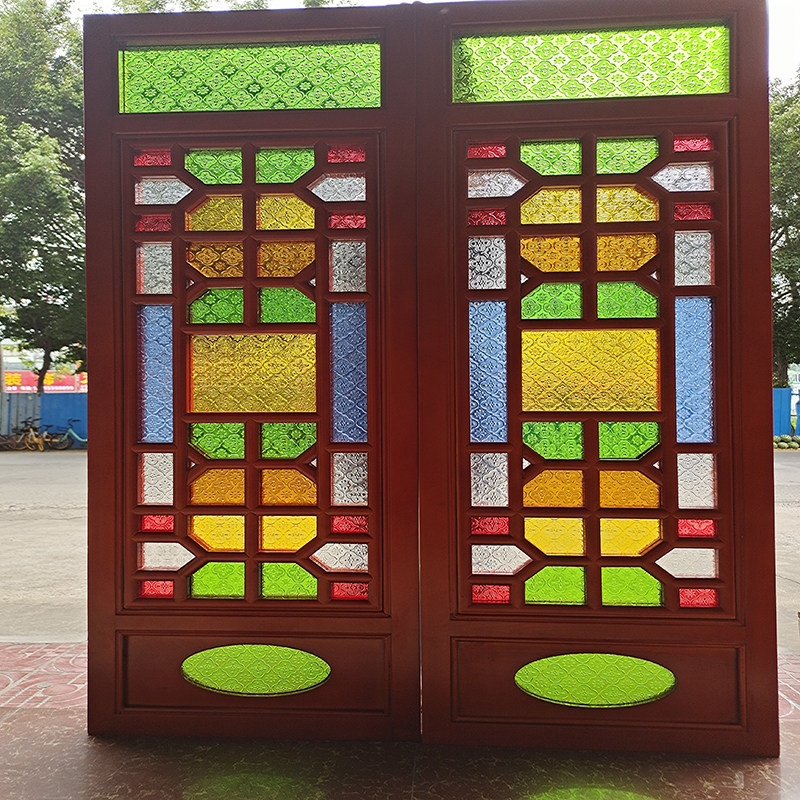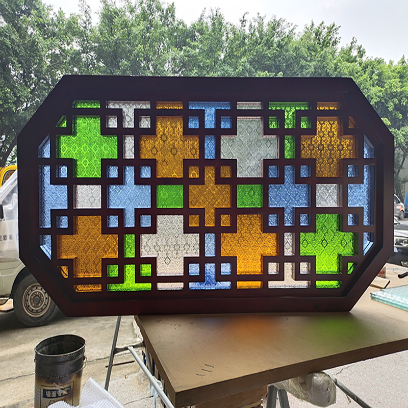 Antique light transmission colourful art embossed glass Manchuria window solid wood flower lattice Chinese screen partition wall Xuanguan Custom