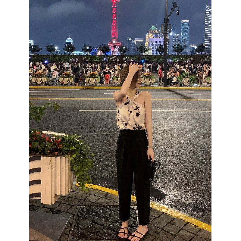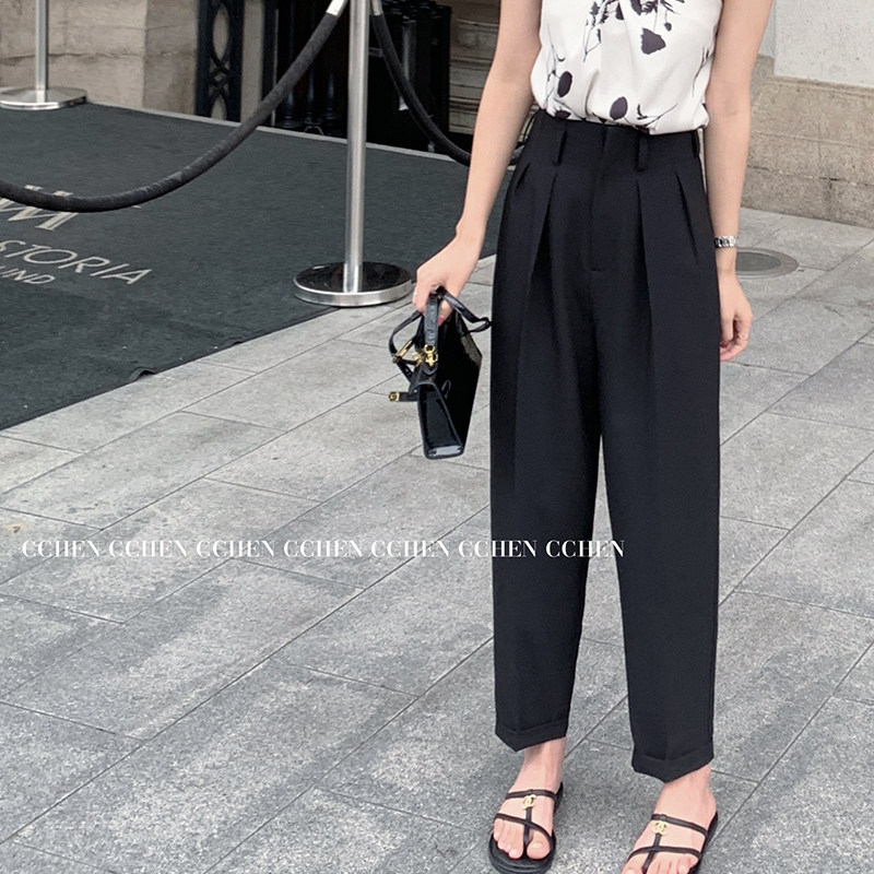cchen Chen Chen_High waist suit pants women's drape feeling thin 2022 summer new straight tube thin radish casual pants