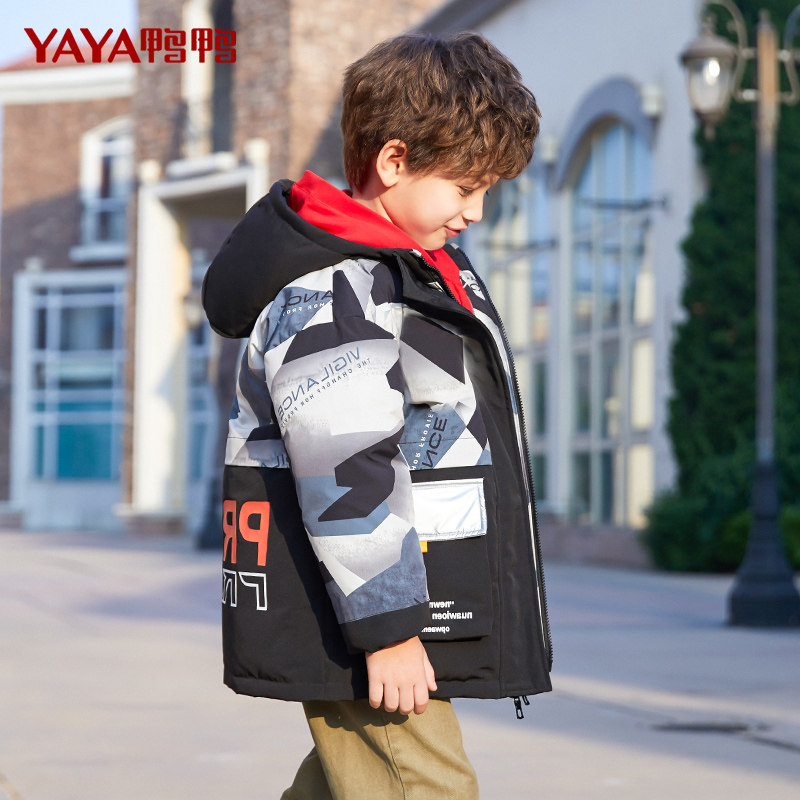 Duck duck children's down jacket boys' mid-length 2022 new style foreign air medium big boy thick winter children's clothing white duck down