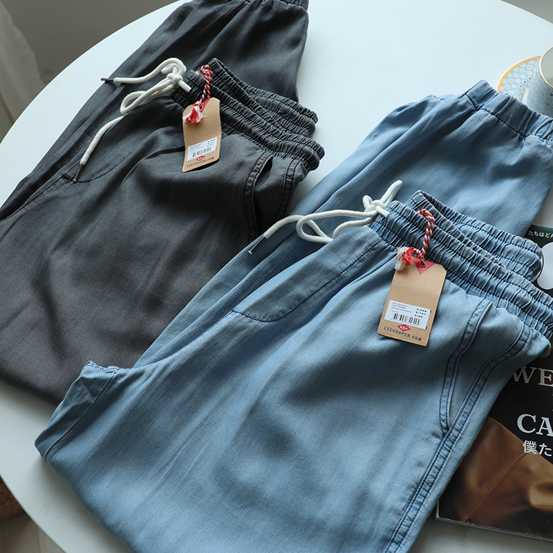 Foreign trade pure yuan cool and smooth ~ summer men casual hundred ice silk saunting thin jeans