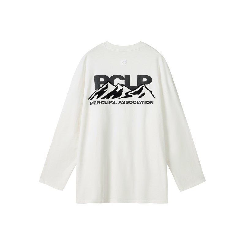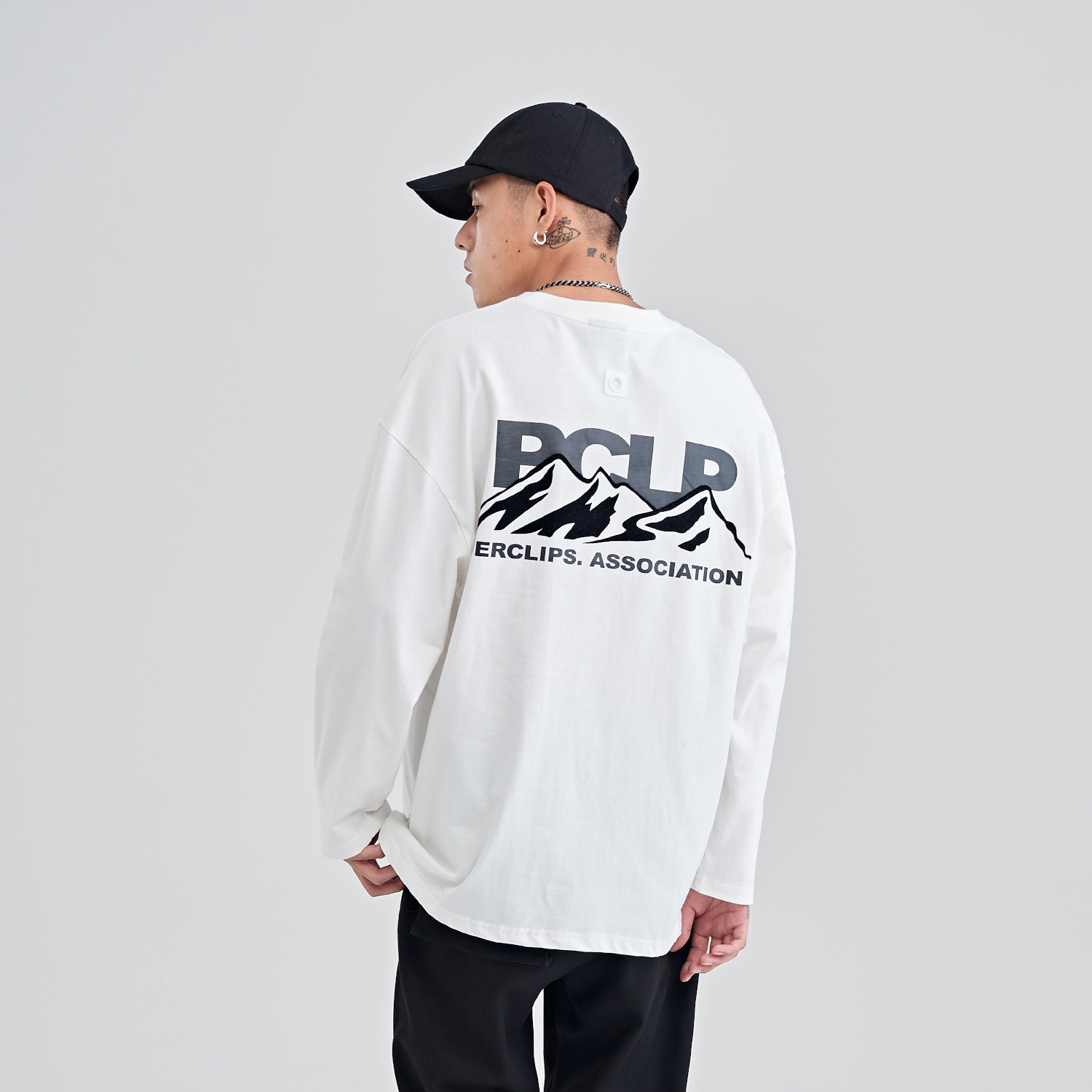 PCLP Xueshan LOGO printed long sleeve national tide card white loose autumn pure cotton T-shirt man
