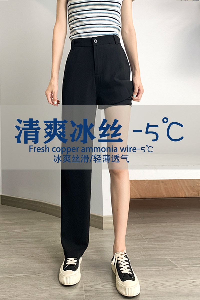 Summer Ice Silk Broadlegged Pants Woman Thin with high waist pituitary snow spinning Anti-mosquito mopping loose Wesley pants Thin Straight Fit Pants