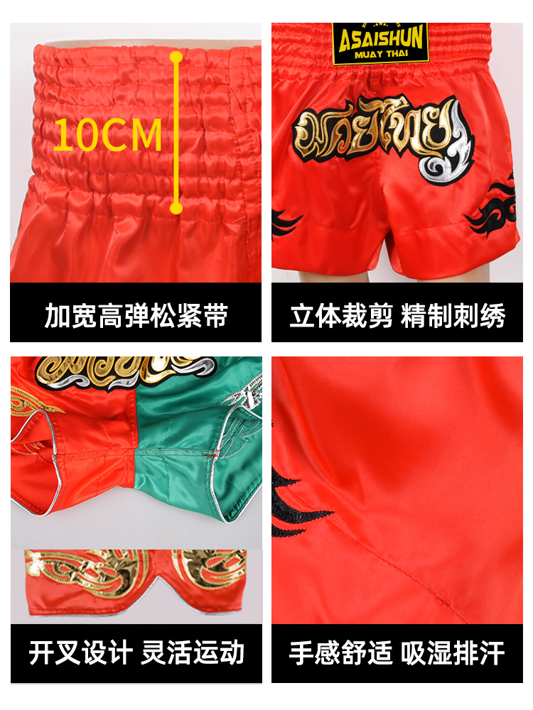 Chinese Red Taiquan Shorts White Gold Pink Thai Shorts Red Green Spliced Taiquan Shorts Gold Blue Taiquan Shorts Yellow Black Spliced Taiquan Shorts Pink Purple Spliced Taiquan Shorts High-end Polyester Red T-Shirt