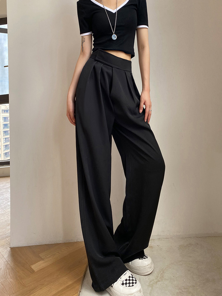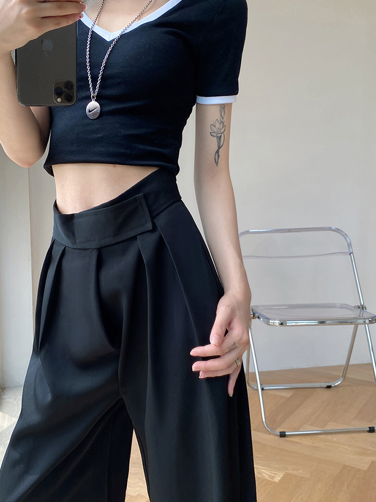 Early Spring Fat Sister mm Design Pants High-Low Vertical Leisure and Relaxing Drag Suite Wide Leg Straight Pants