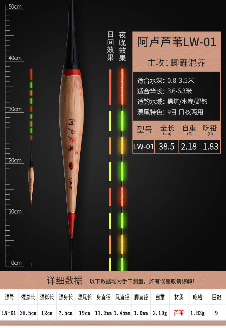 Reed luminous drift day and night dual-use ultra-bright shadowless crucian carp electronic drift eye-catching long-floating anti-current vertical fish drift