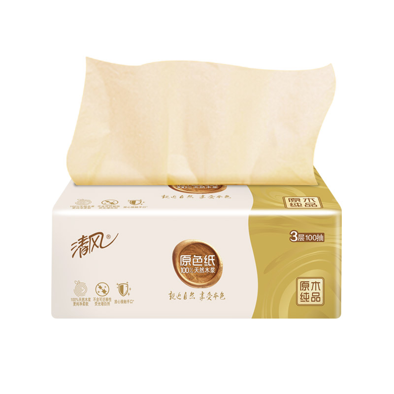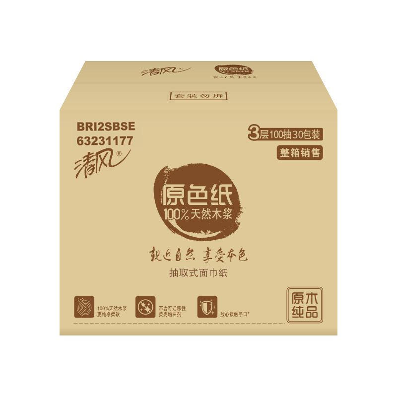 Breeze primary color wood color extractable toilet paper 3 layers 100 pumping 30 packs of infants and young children can use facial tissue skin-friendly family pack T