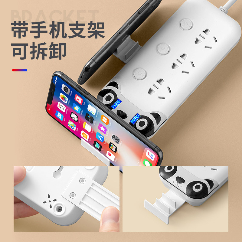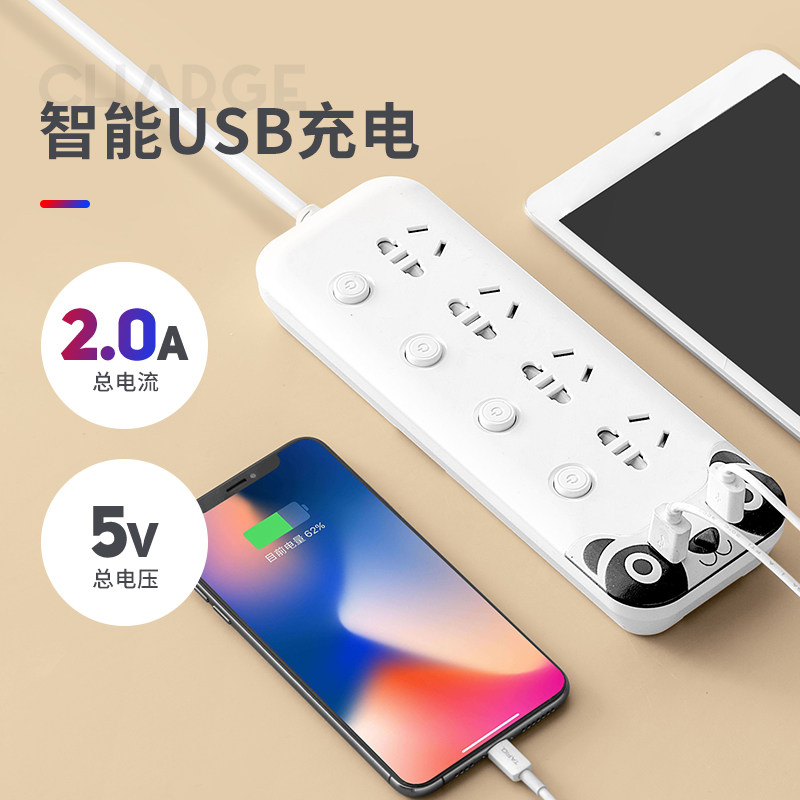 Multi-function wire plug socket porous panel smart USB charging extension wire creative dorm plug board