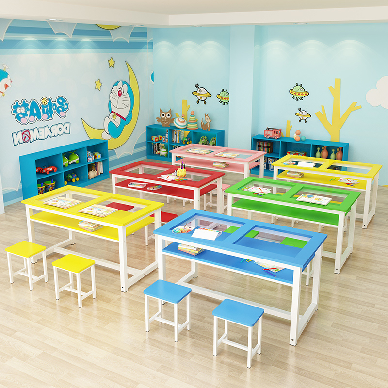 Kindergarten Painting Table Fine Art Table Tutorial Tutoring Training Course Class Table And Chairs Handcrafted Calligraphy Painting Room Table Glass Table